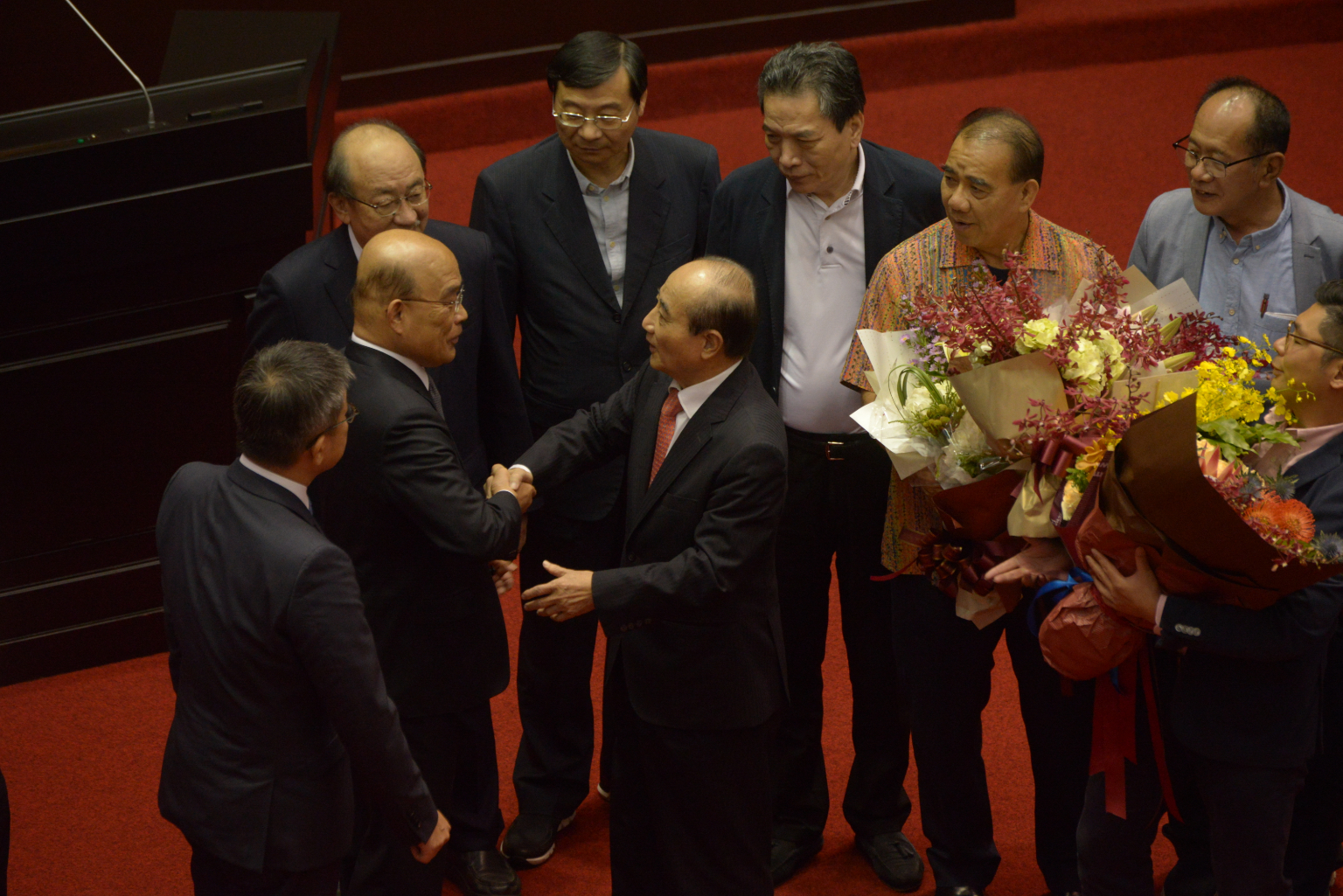 在王金平完成最後一次總質詢後,行政院長蘇貞昌也特別獻上花束給王金平,原本砲聲隆隆的國會議場頓時不分黨派顏色,全體人員起立為這位前立院龍頭鼓掌喝采。