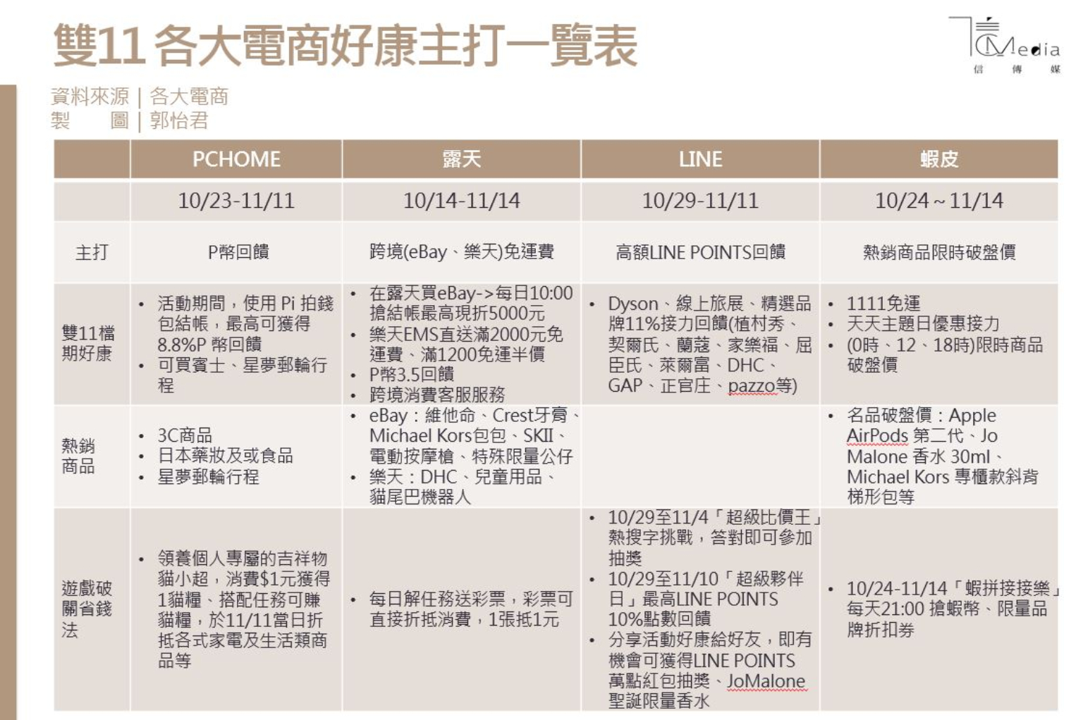 再過幾周就是雙十一日,這一天已成為台灣賣家第四季最重要的銷售活動。今年所有賣家雙十一的促銷活動也比往年提前,包括蝦皮、PcHome、Line等各電商無不使出渾身解數,從10月14開始至11月中推出完全不同的好康優惠,折價券及各樣遊戲,預計11月11將會是電商平台之間最激烈廝殺的一日。