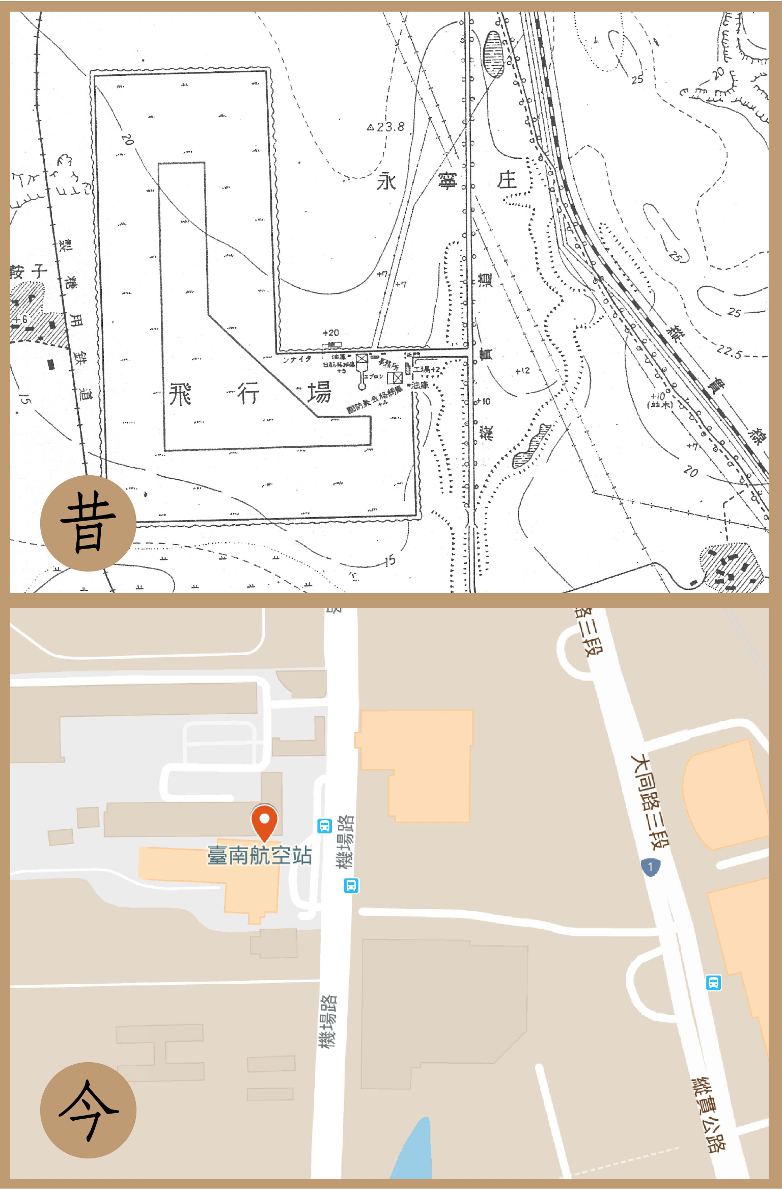 日治時期因應航空需求,1937 年在臺南州新豐郡啟用第一代飛行場。但時局動盪,後於 1941 年太平洋戰爭前夕轉為軍用,作為海軍航空隊的基地與訓練場所,直到 1944 年臺灣沖航空戰的衝擊,日軍損失許多戰機與練習機,這座軍用飛行場逐漸沒落。