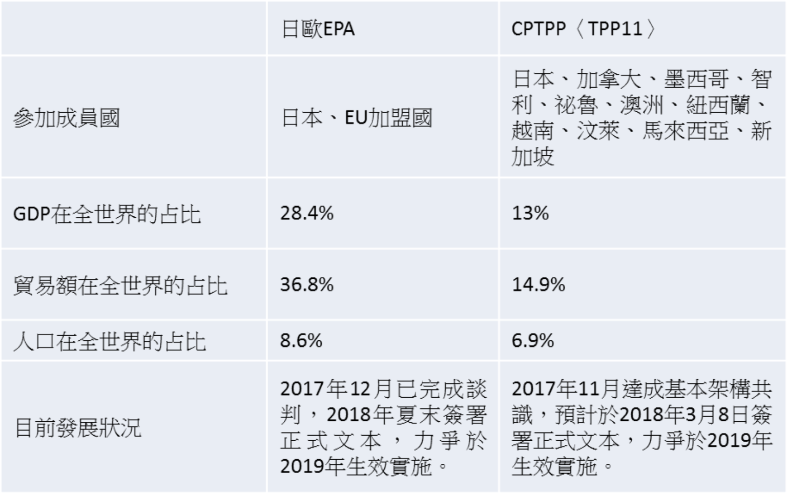 日歐EPA與CPTPP之比較