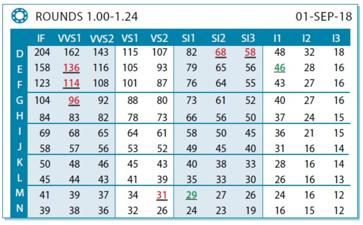比較2008年報價表,會發現鑽石已經回到金融風暴時候的價位。