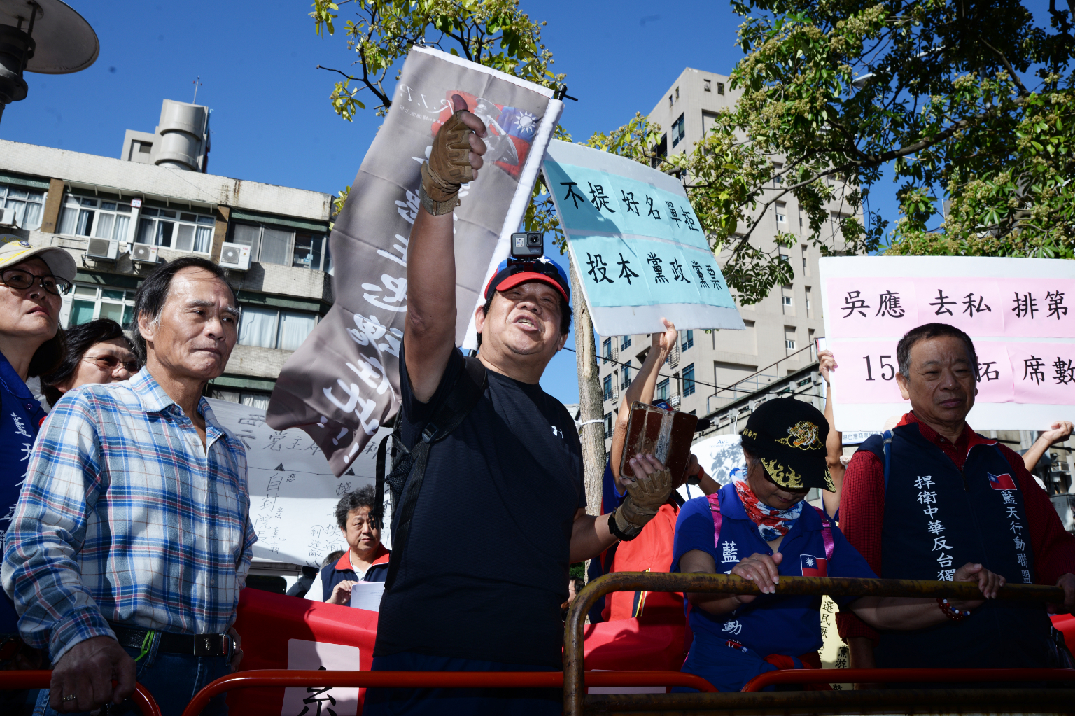 另一方面對於吳敦義把自己排進安全名單內,藍天行動聯盟高喊「吳敦義私心誤國,下台」,並手舉標語向黨中央嗆聲,「不提好名單,拒投本黨政黨票」。