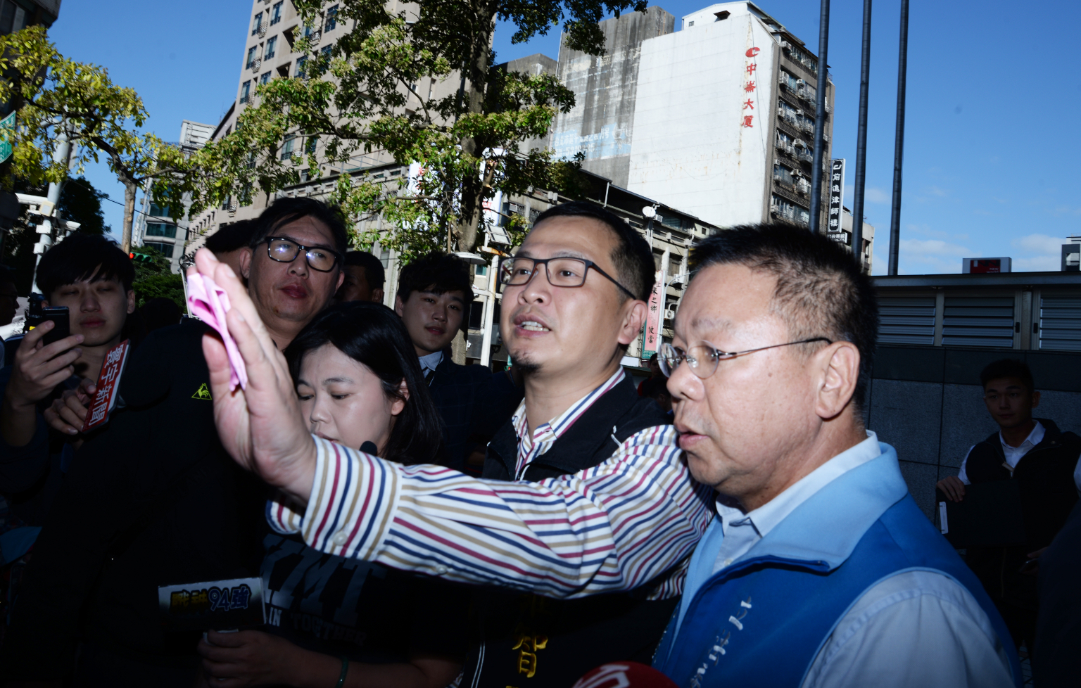台灣國到國民黨黨中央前向泛藍支持者嗆聲。(攝影/趙世勳)