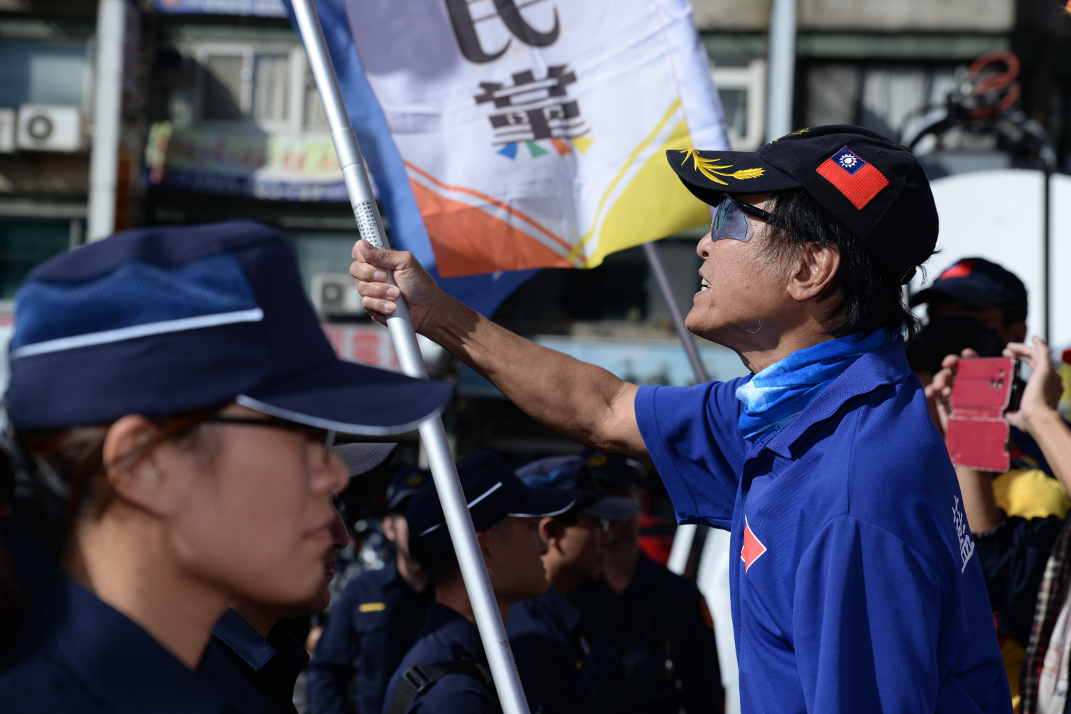泛藍支持者在另一邊和台灣國互相隔空叫罵。(攝影/趙世勳)