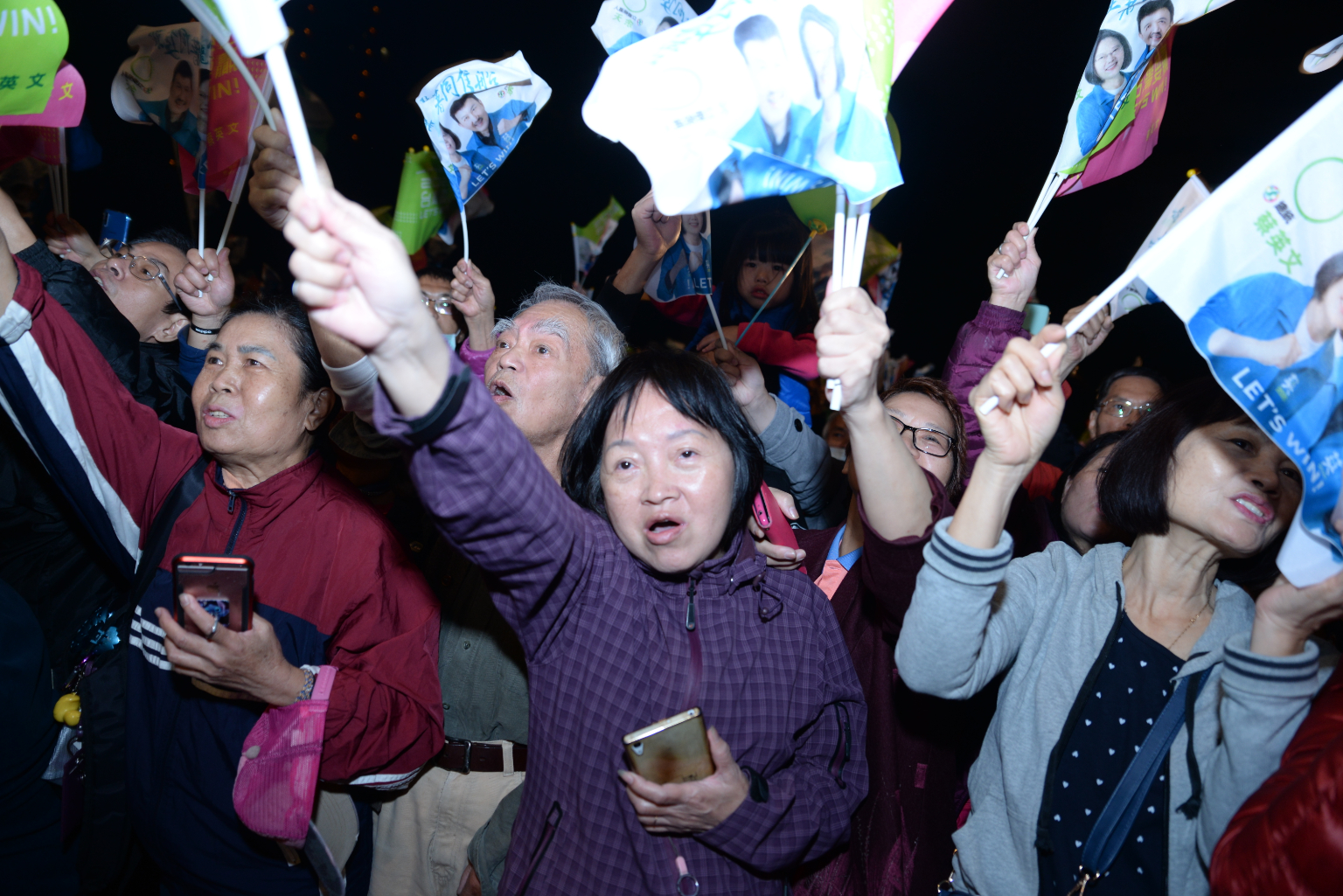 現場支持者高聲呼喊「余天凍蒜」,現場氣氛到達了最高潮。(攝影/趙世勳)
