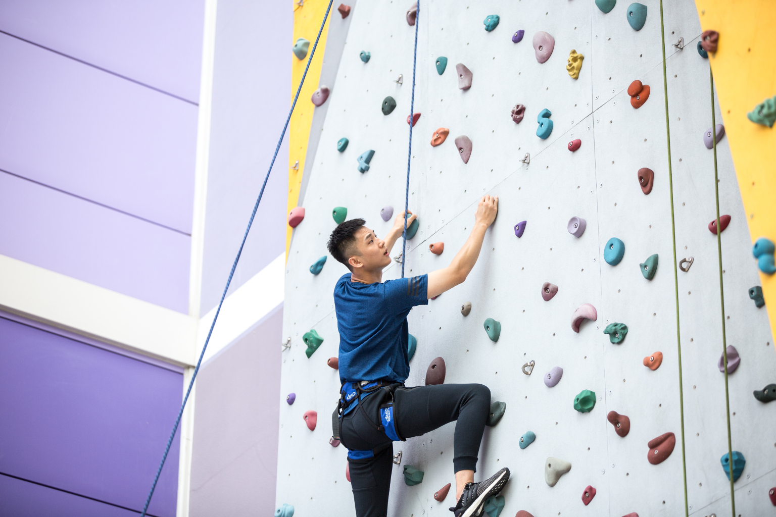 回頭往下望,還要克服心理對於高度的恐懼。每當完成攀岩路線,就是一次突破自己極限的完美展現。還有牆面傾斜角度更大的進階版設施可供選擇,趕快來體驗更上一層樓的刺激!