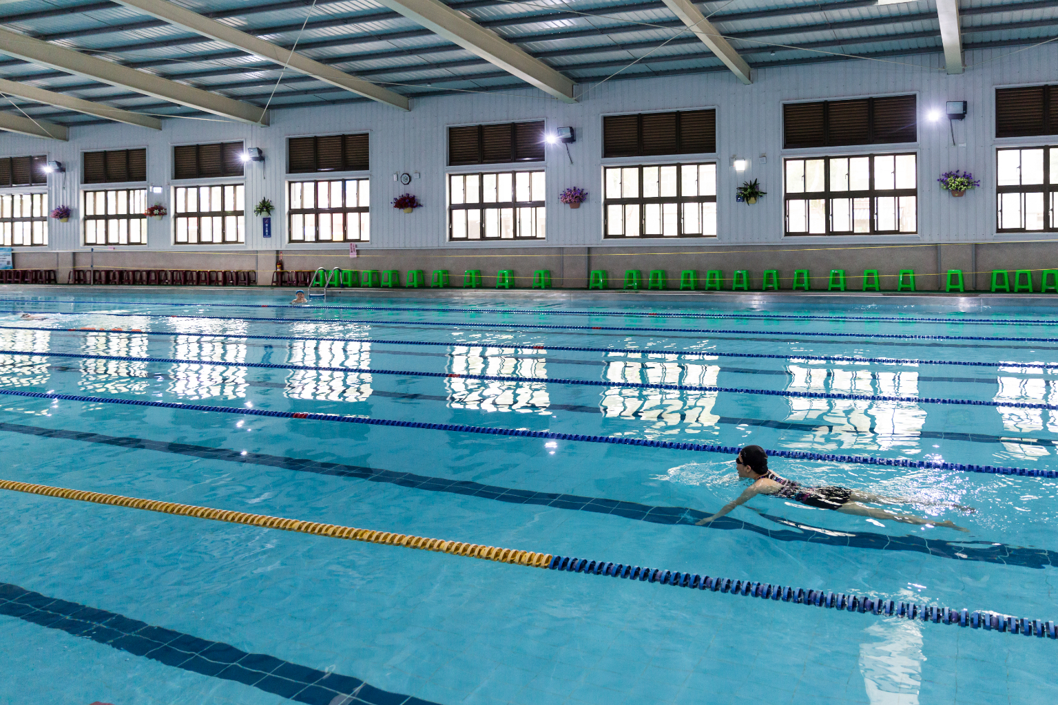 汗水淋漓時,能夠跳進游泳池裡游兩回合,是最暢快的事。來到「平興國中游泳池」,換上泳衣、戴上泳帽,進入游泳池裡,舒適的水溫讓人好放鬆,協調肢體動作及調節呼吸,享受寧靜時刻的同時,還能達到燃脂及舒展筋骨的效果;即使不會游泳,在水中活動,也能藉由阻力讓肌肉線條更加緊實。