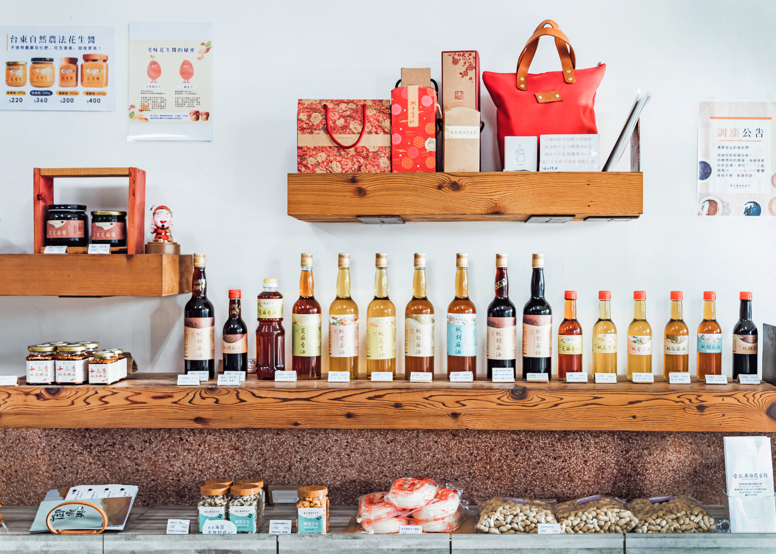 金弘麻油花生行最經典的,當屬花生油跟黑麻油,此外也陸續新增多種油品,如香油、苦茶油、白麻油……,並因應市場需求,研發芝麻醬、花生醬、小零嘴等週邊商品。其中,花生零嘴是黃筑憶跟朋友復刻童年記憶的創新嘗試,連調味的成分跟含量都斤斤計較,只為了讓客人嘗到花生的原始風味。黃筑憶堅持使用在地作物,作為收購跟販售的中介者,她勤跑產地、了解種植狀況,相信重視作物的品質勝過產量,就有機會影響第一線的農友。