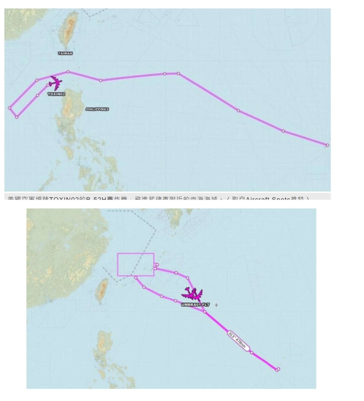 「Aircraft Spots」披露,兩架美軍B-52H轟炸機12月4日自關島美軍基地起飛後進入台北飛航情報區後返回安德森空軍基地,這是有史以來美軍B-52轟炸機首次公開地(開啟ADS-B暴露位置)進入飛航情報區,也打破過去離中國沿海頂多是偵察機的紀錄,既使在1996年台海飛彈危機,美國也沒有公開派出B-52轟炸機到中國沿海震攝。