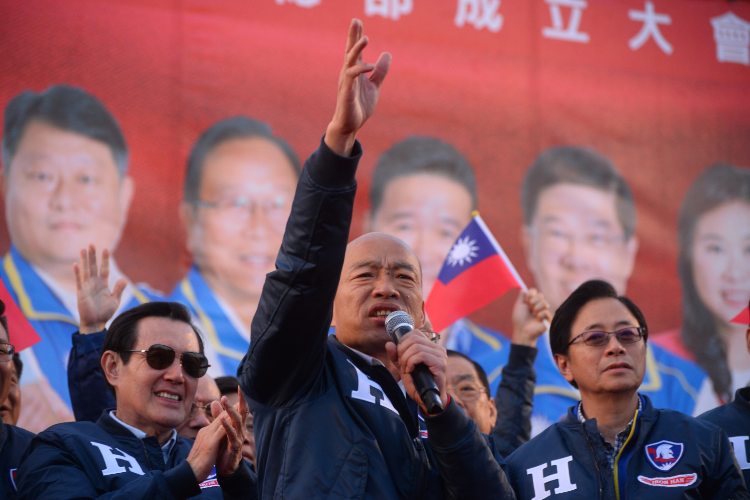 韓國瑜在致詞時大喊要新北民眾一票拉一票,集中選票爆破,讓國民黨總統與12席立委全壘打,讓中華民國再一次展翅高飛,就在致詞尾聲,牽起新北市前市長朱立倫的手,宣布由朱立倫接任韓國瑜全國競選總部主委,韓國瑜並說他與張善政、朱立倫,「鑽石三角」正式結合。