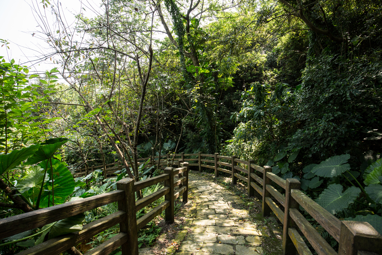 穿過石門國小一旁寧靜的巷弄,「挑擔古道」入口隨即在眼前出現,像是與老時空相會的交叉點,踏上重新鋪整好的石板路,想像昔日挑著扁擔、運送物資熙來攘往的人們,以及學童路過此道前往上學的模樣,讓輕鬆的健行之旅增添些許人文感觸。