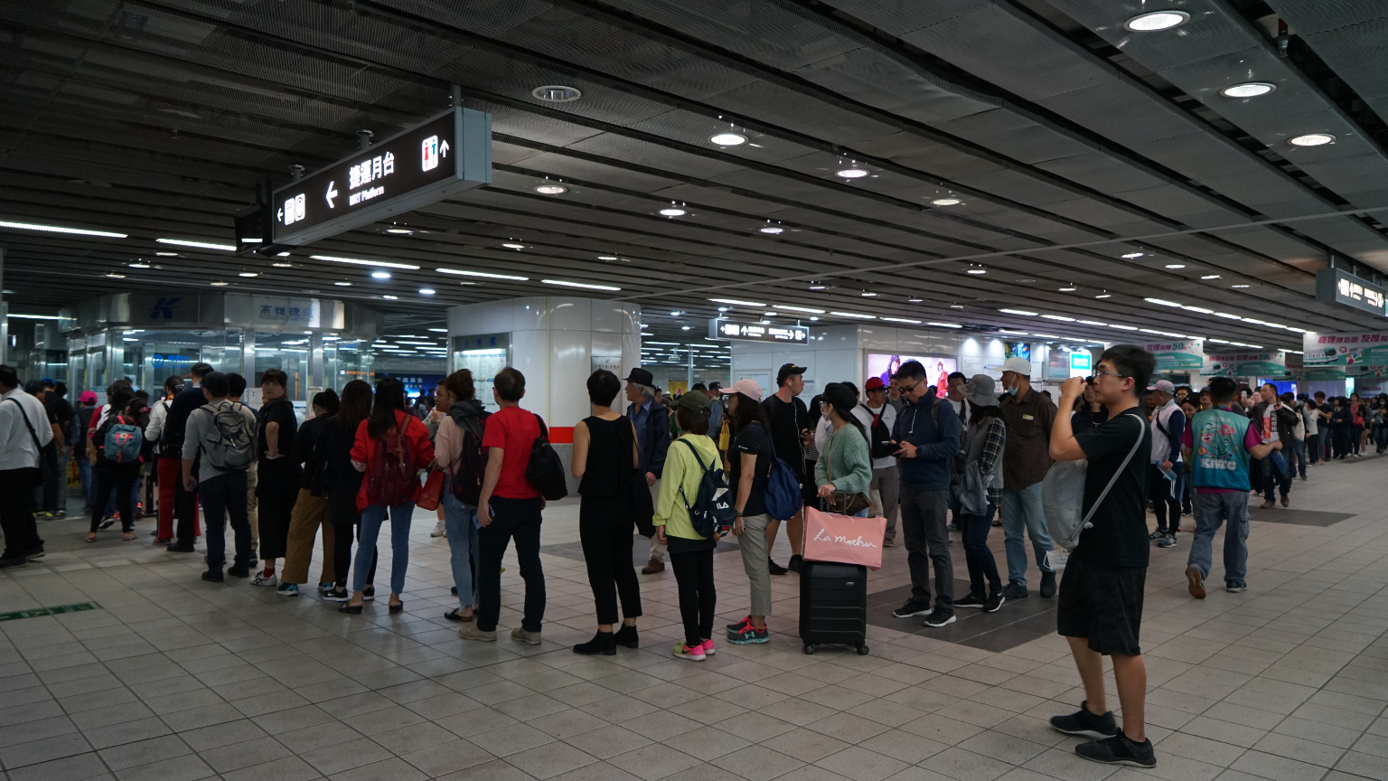 高雄高鐵轉捷運的左營站,光是要刷卡進站就大排長龍。