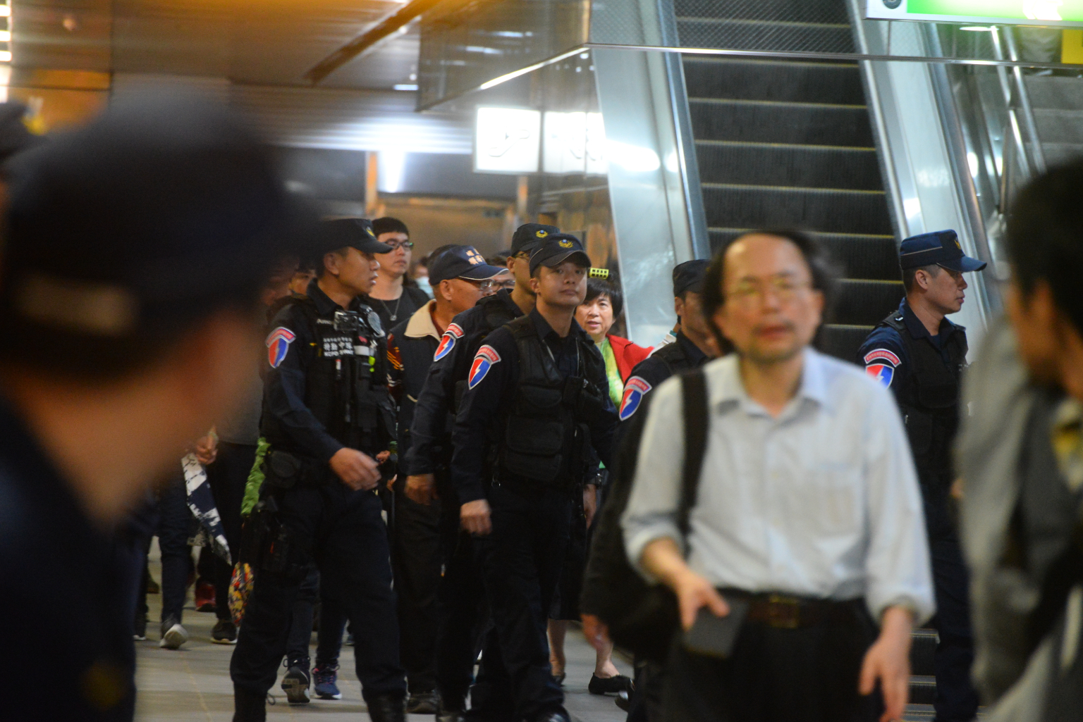 大約早上九時,美麗島捷運站便有許多警力戒備。(攝影/趙世勳)