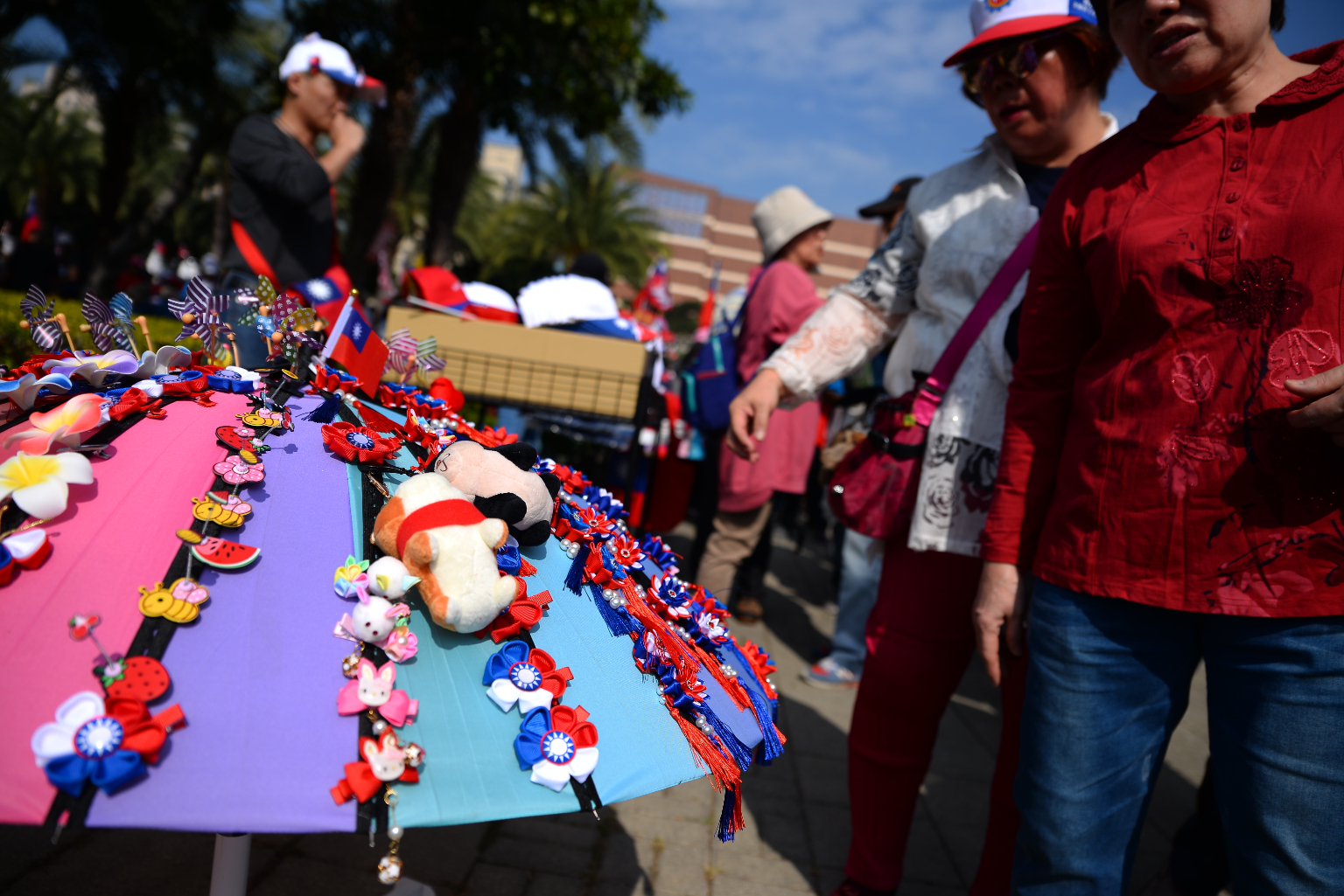 公園周邊攤商也販賣國旗相關小物。(攝影/趙世勳)
