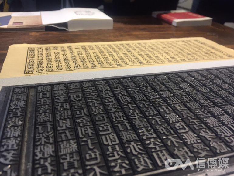 活字排版以及藉此印出的佛經。(攝影/陳怡樺)