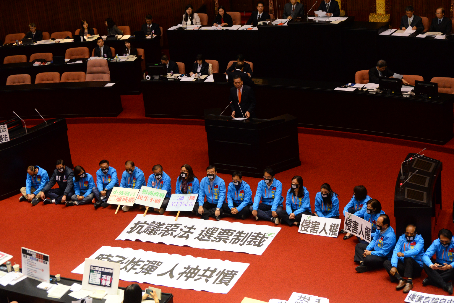 藍綠兩黨皆啟動甲級動員,不過,國民黨在大體討論發言後,帶上黑色口罩,坐在發言台抗議不投票,再加上民進黨的人數優勢,反滲透法順利通過。
