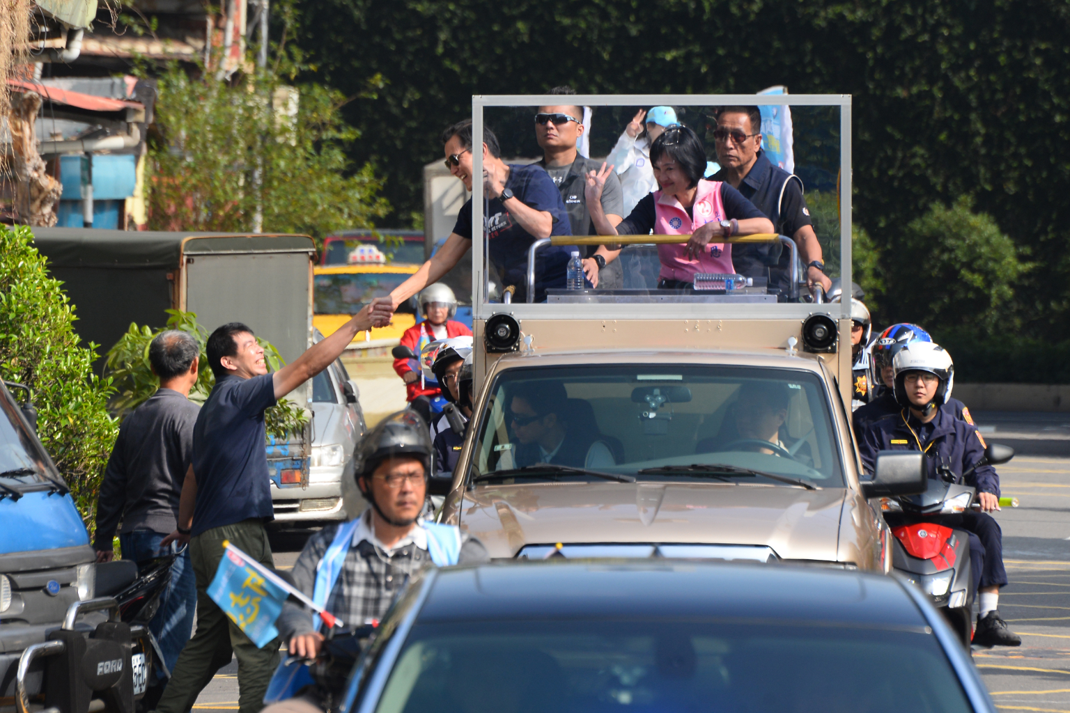2020大選進入黃金週,前總統馬英九全台拚輔選,而7日上午他到板橋陪同新北市第7選區立委候選人柯志恩在埔墘後埔地區車隊掃街,而馬英九一抵達現場,支持者歡聲雷動,揮舞手中的國旗,馬英九也開心地在車上伸手與粉絲們握手。