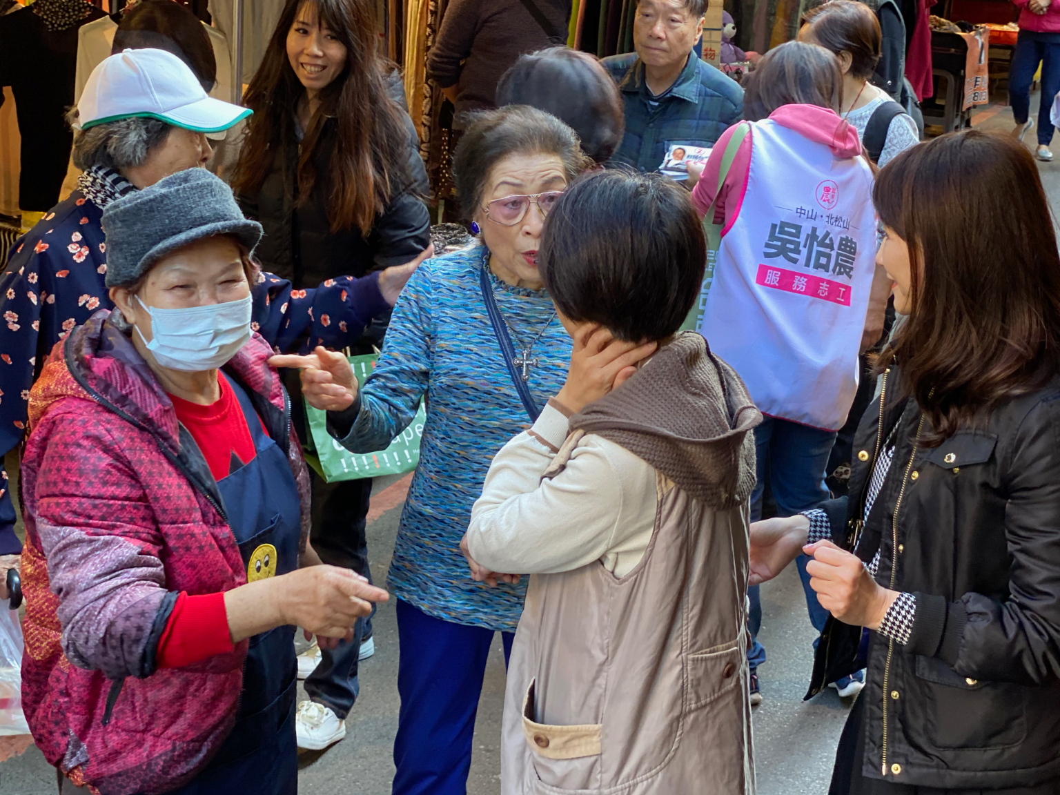 選前兩天,《信傳媒》獨家直擊,吳怡農的媽媽也出動了,9日在志工的陪同之下,當起吳怡農的分身,到長春市場商圈拜票。