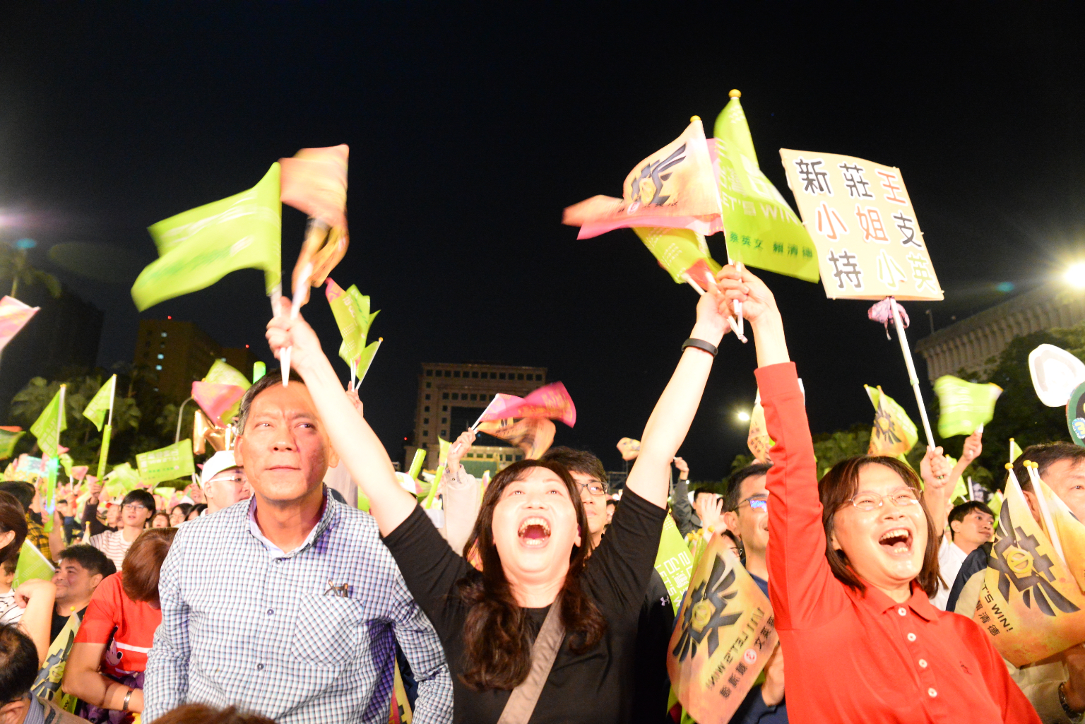 繼昨天國民黨總統候選人韓國瑜在凱道的大造勢之後,民進黨也在10日晚上於凱達格蘭大道舉行「團結台灣 民主勝利」選前之夜造勢晚會,由於前一天韓國瑜造勢號稱百萬人,引發綠營支持者緊張,綠營群眾大大小小,紛紛趕在下班後前往凱道造勢晚會,現場擠爆,人潮溢出到自由廣場。