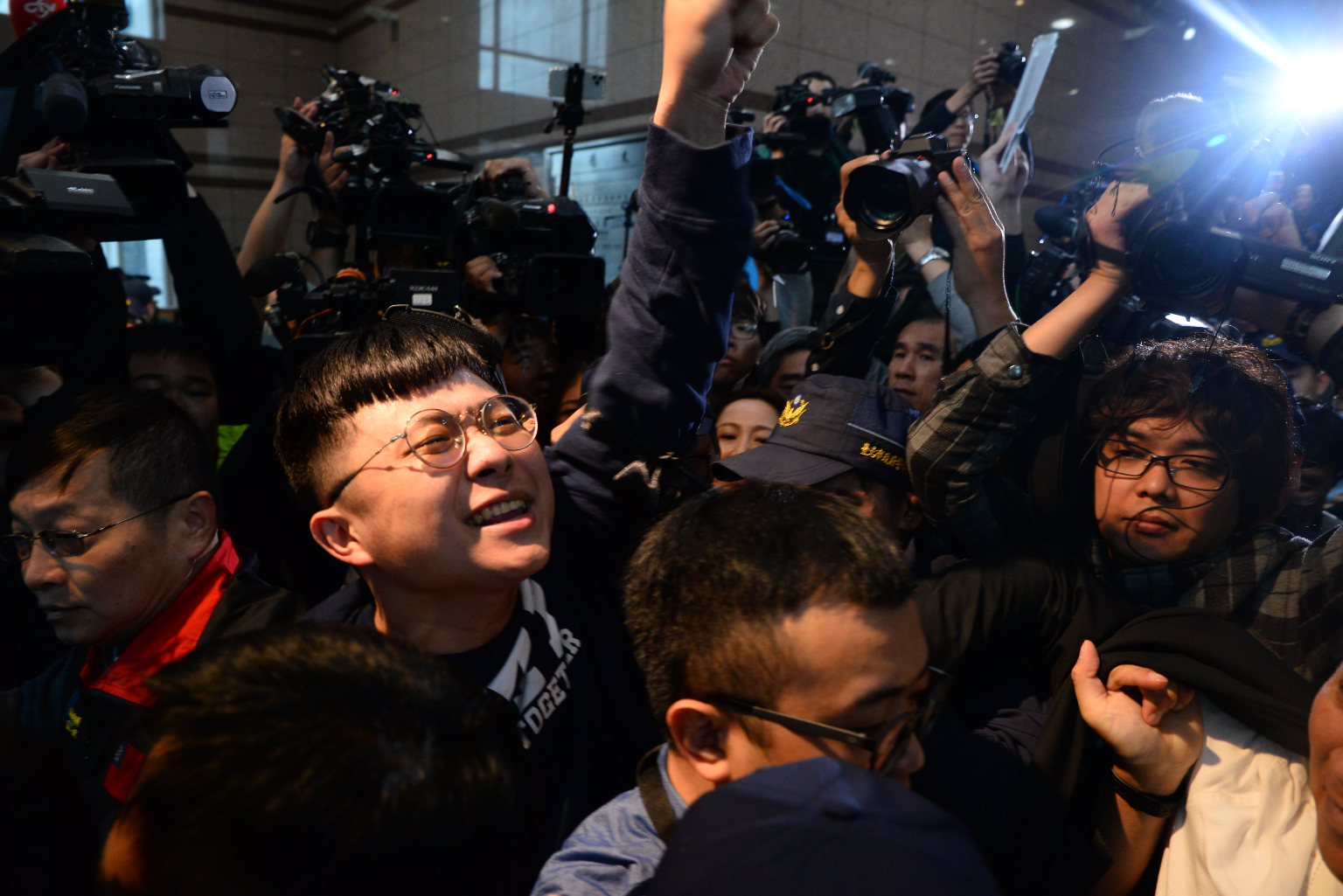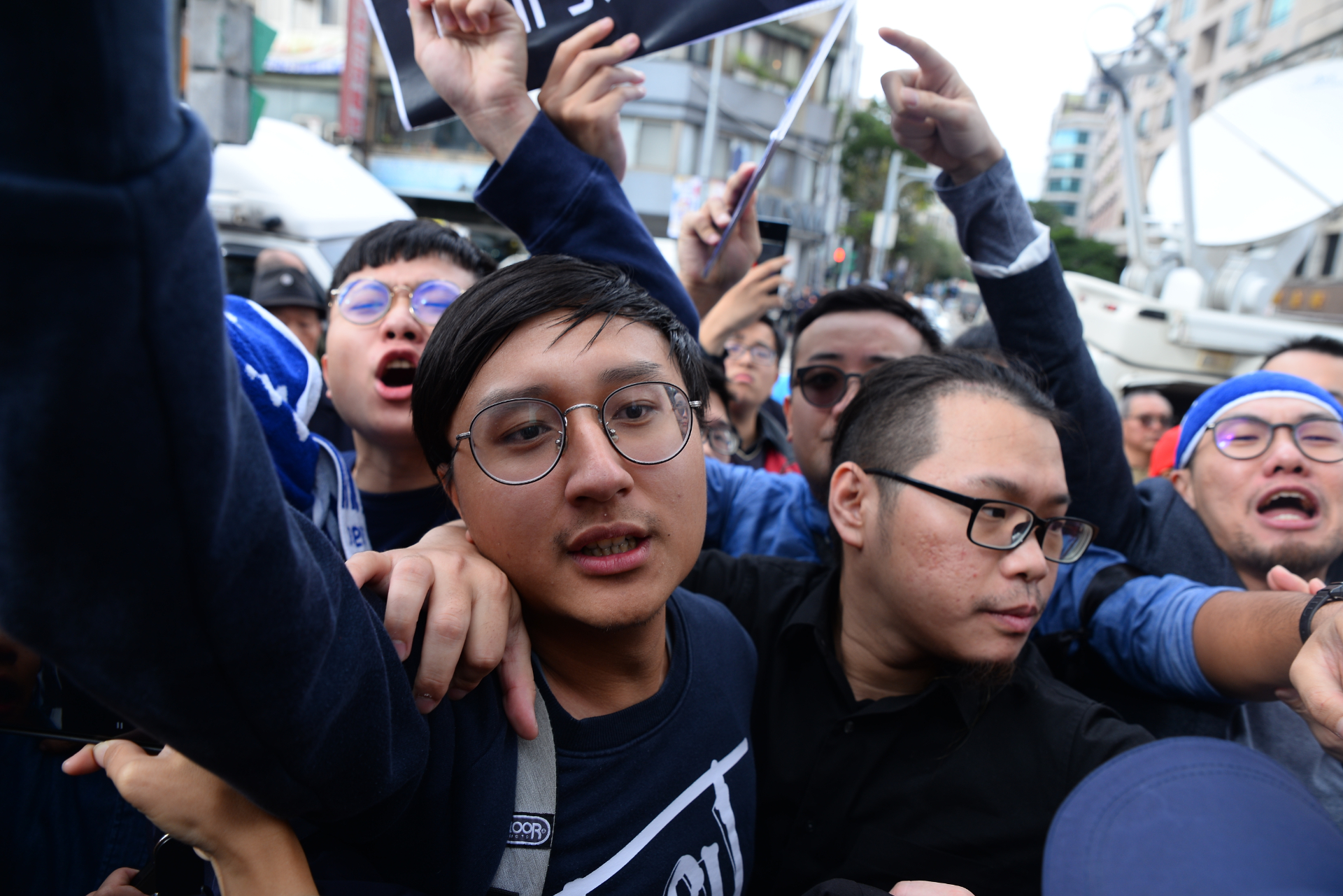 多名青年與黨工、保全發生激烈衝突,最後遭帶離黨部內,一群青年在外面仍持續抗議,高喊「國民黨就是這樣對年輕人的,把年輕人趕離黨部」。(攝影/趙世勳)
