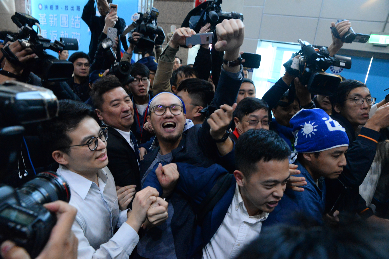 另外,台灣國辦公室主任陳峻涵也藉機「亂入」,以嘲諷口吻感謝吳敦義下架韓國瑜,表達慰留吳領導國民黨的立場,還高舉「堅持兩岸同屬一中」、「堅持九二共識」手舉牌。
