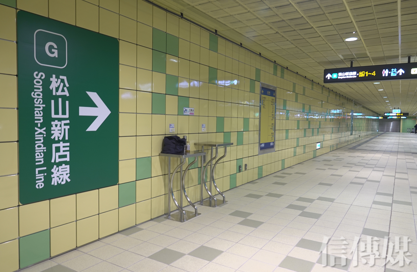 在大坪林站轉乘部分牆面也有特別設計。隨著版塊綠色越來越多就表離綠線越來越近。