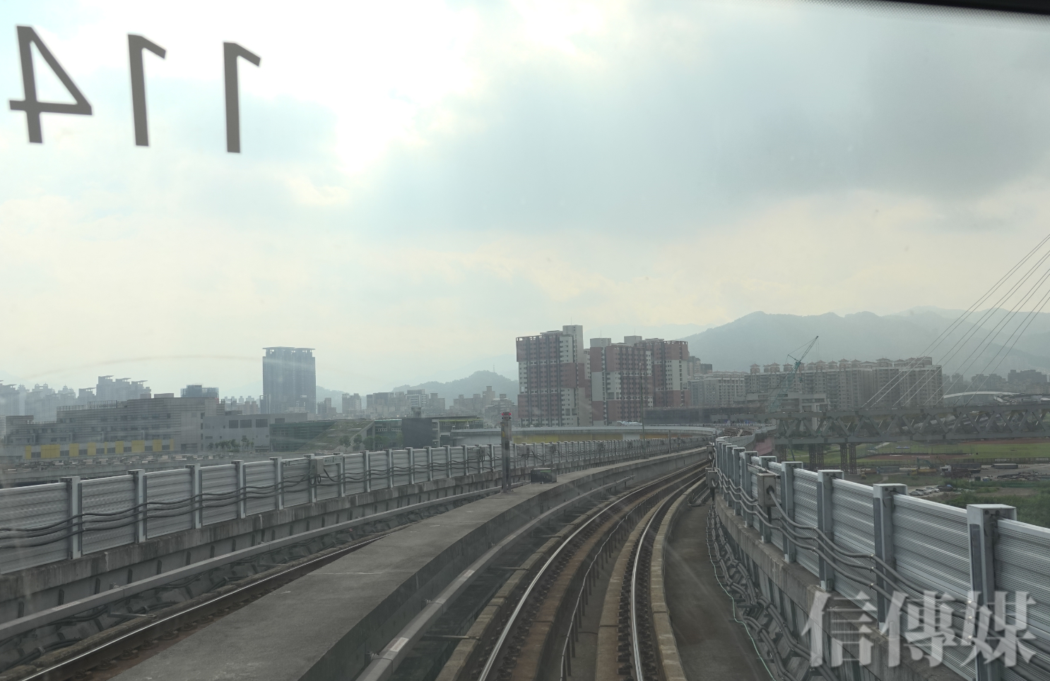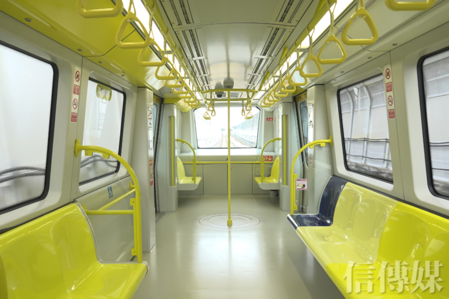 記者實際體驗,窗外風景佳可瀏覽新北遠景,車廂一體成形可從第一節走到最後一節,至於噪音方面相較於松山新店線來說相對小聲,另外整體車廂偏小,身高165的民眾在車廂內行走頭容易撞到把手,手伸直的話即可碰到天花板。