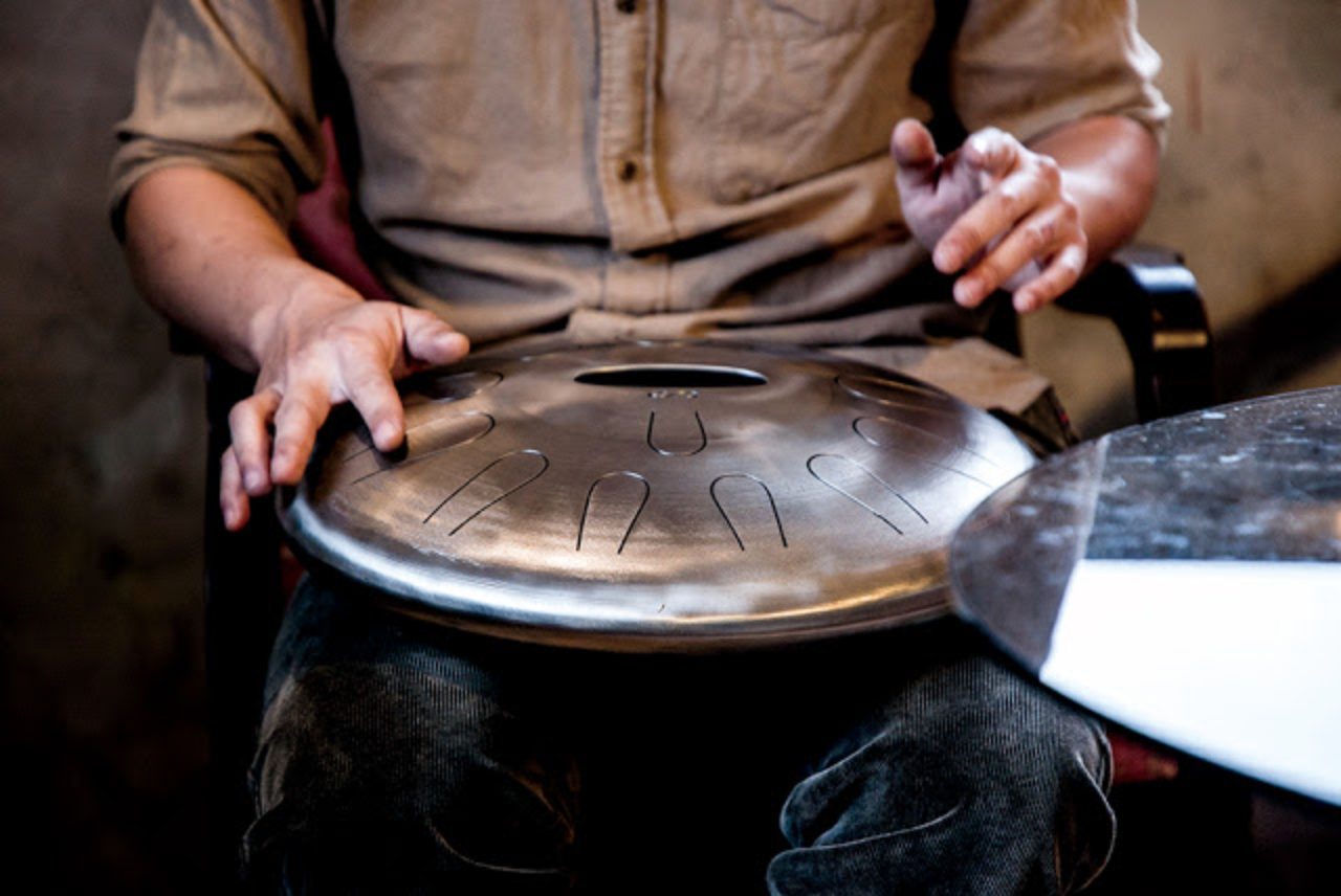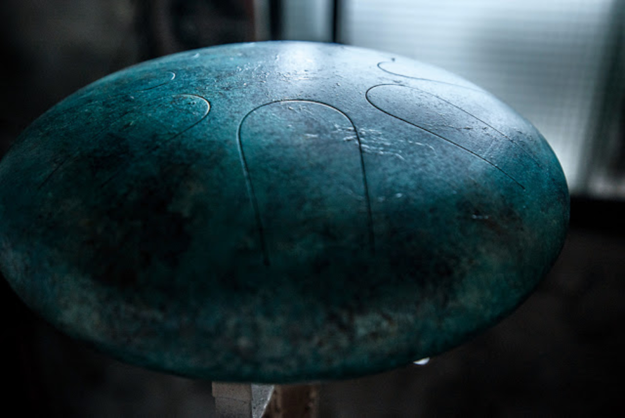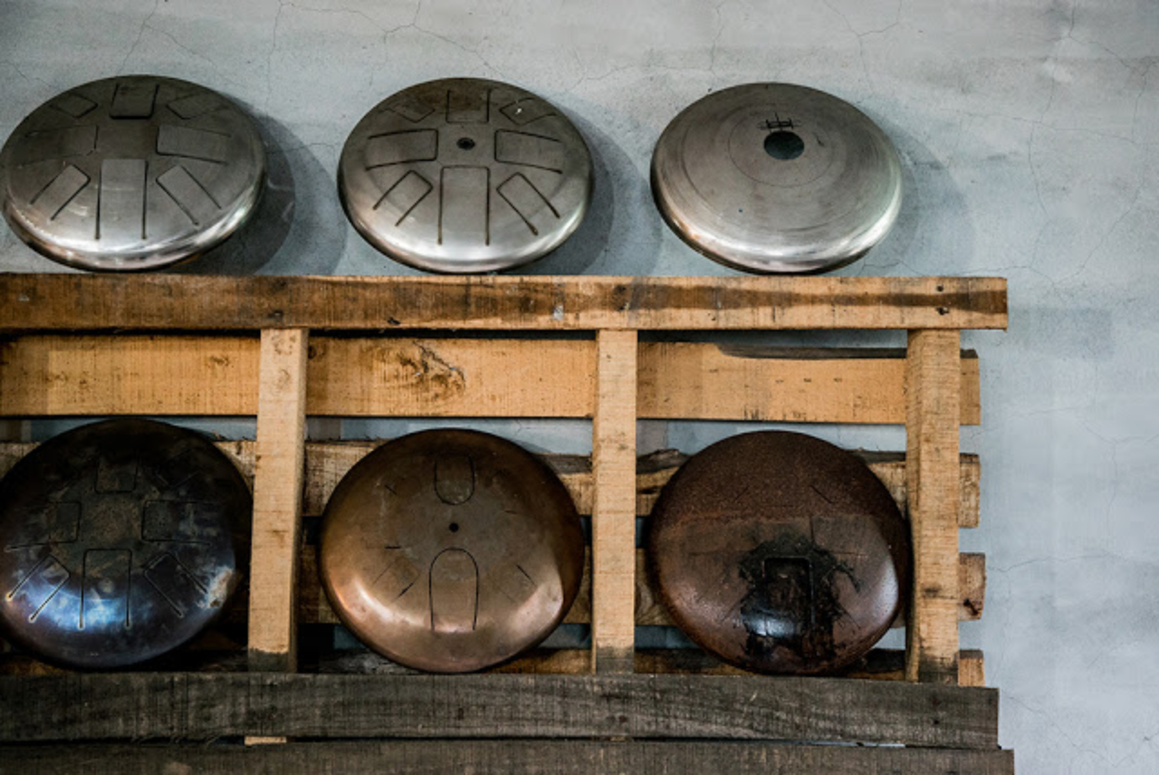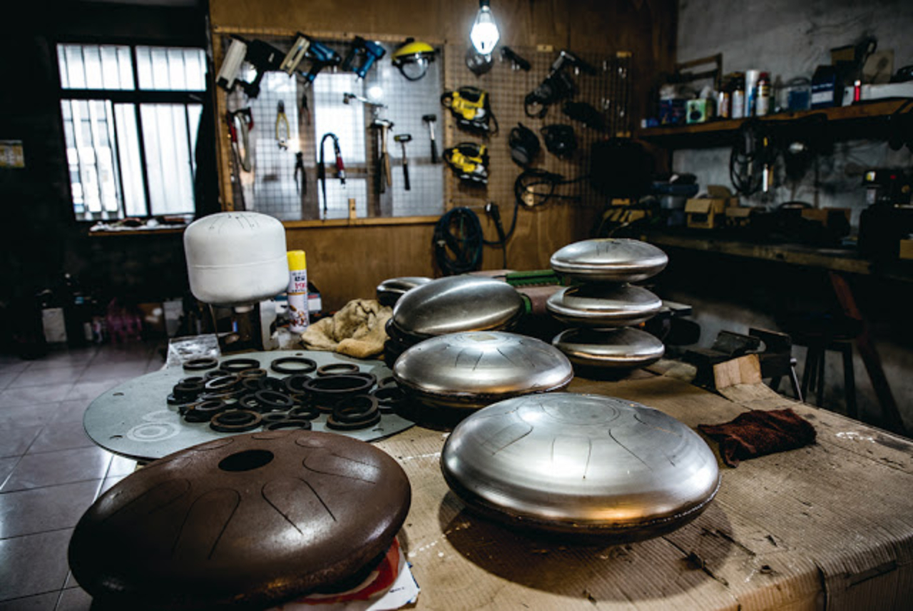 輕敲天鼓,一縷清脆的共鳴震盪,延音遊走在空氣中久久才停,有人稱這是來自宇宙的聲音,而天鼓就像是外太空掉落地球的美麗隕石,難以想像天鵝的過去是隻醜小鴨,天鼓師阿丹揭曉:「它的原型其實是瓦斯筒。」工作室外擺著一排廢氣瓦斯桶,堅硬冰冷的鋼瓶被火焰鑄燒成藝術品,雖能發出聲響,但阿丹不將它定義成樂器,「你也可以把它當成一件擺飾,只要它的存在讓人感到舒服就行了。」