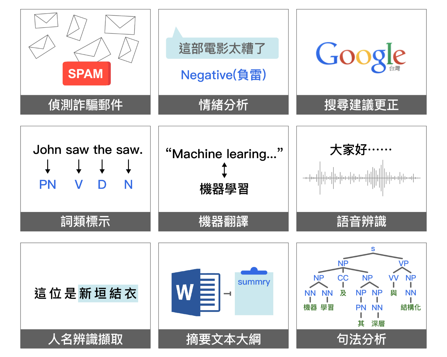 另外,輿情分析、聊天機器人等熱門應用,其基礎也需要先讓電腦理解人類所使用的語言,掌握其中的句法結構、分析字裡行間的情緒,才能統計輿情、或讓機器人做出適當的聊天回應。