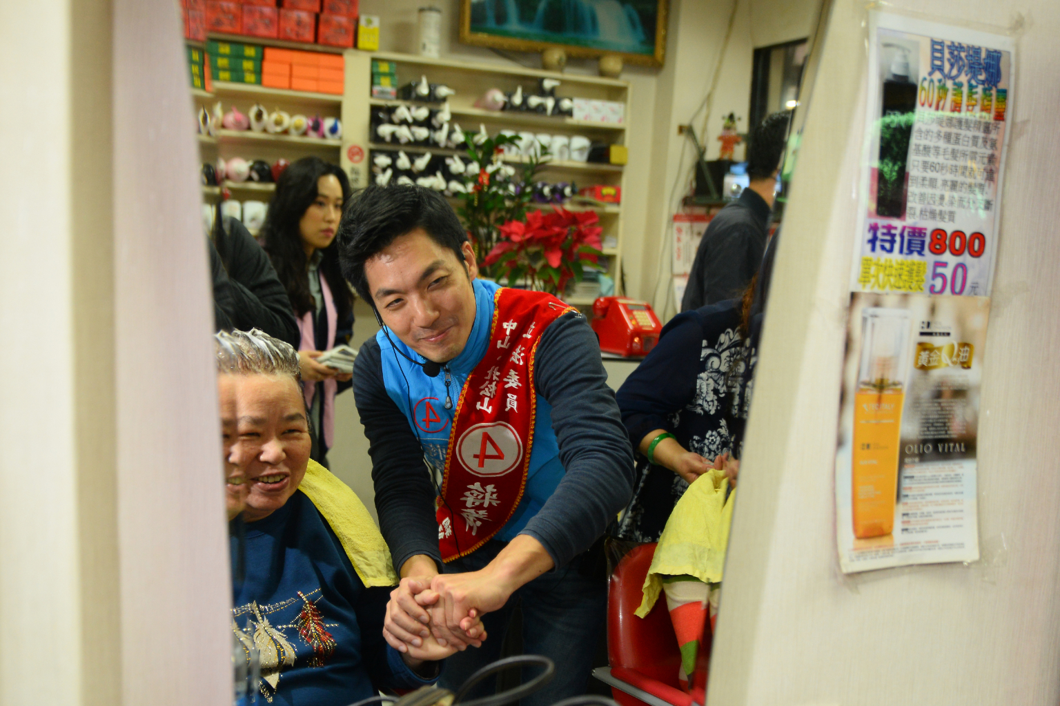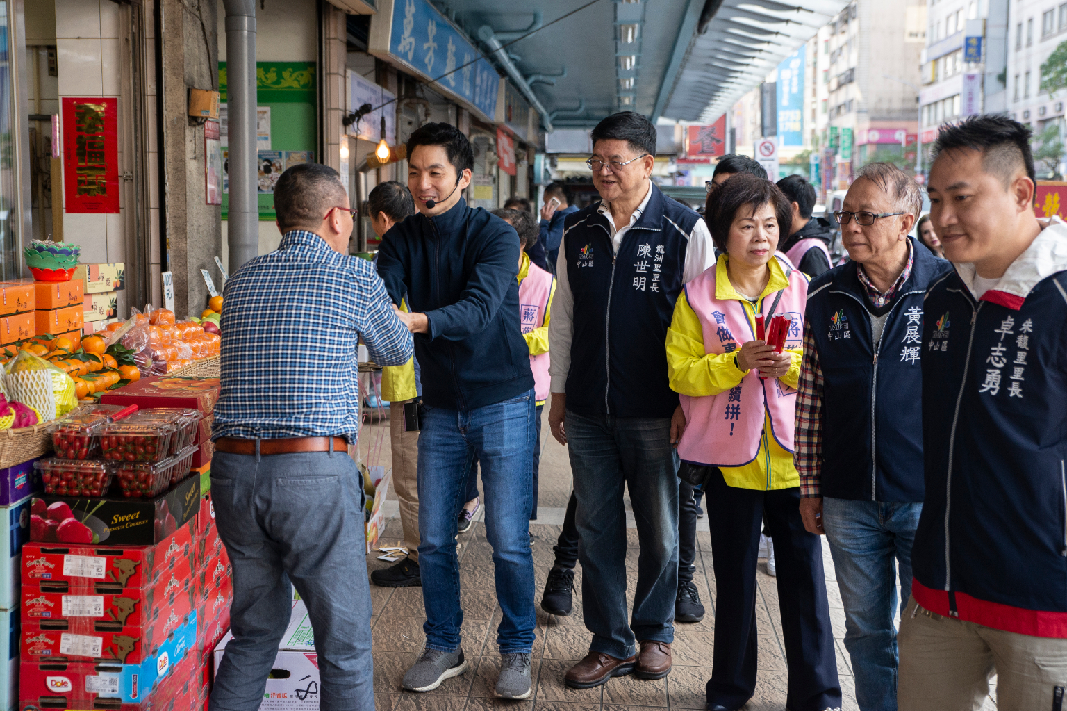 蔣萬安謝票行程吸引不少婆婆媽媽關注,更有民眾在一旁等候和蔣萬安合照,上前開心握手問好,要蔣萬安連任後繼續加油。