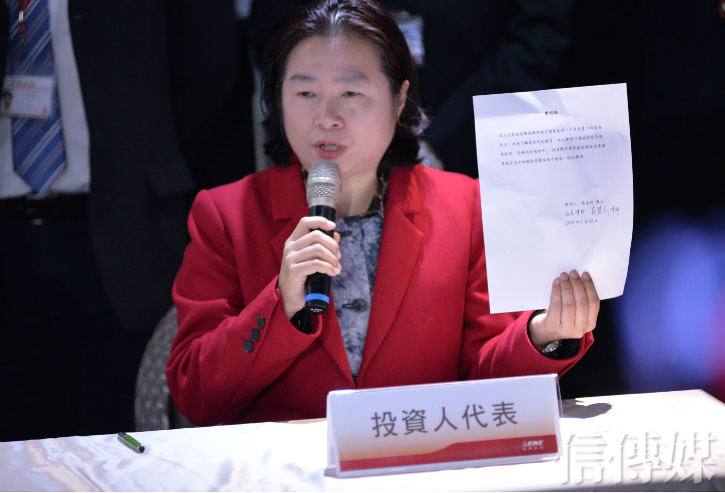 律師蔡慧玲以投資人代表身分出席,發布一張「蔡孟哲博士」的聲明,「只要政府給予遠東航空明確復飛條件,投資團隊會有最高意願投資遠東航空」。蔡慧玲說,蔡孟哲博士是台中很出名的金主、實力派投資人,投資團隊當中還有台中地產大亨林董,本來22日也要一起到記者會現場,她表示,只要政府答應復飛,投資資金就會挹注,新的投資團隊以永續經營為目標。