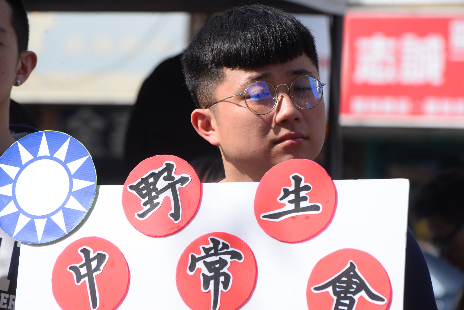 今(22)日國民黨青年軍在中央黨部外召開野生中常會,過程相對平和。(攝影/趙世勳)
