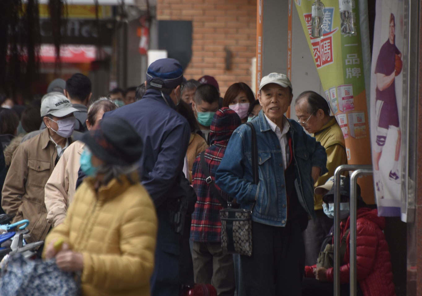 由於藥局獲得配送的口罩量有限,不少民眾一早就在門口排隊、深怕買不到;開賣後為了維持秩序,些許藥局還配置警員駐點守在現場,同一時間僅開放一定人數入店購買,過程順暢、購買秩序良好,並無推擠、衝突情形。