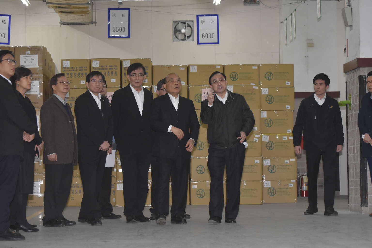 今(11)日行政院長蘇貞昌訪視中華郵政服役物流中心,同時瞭解口罩包裝情形。(攝影/趙世勳)