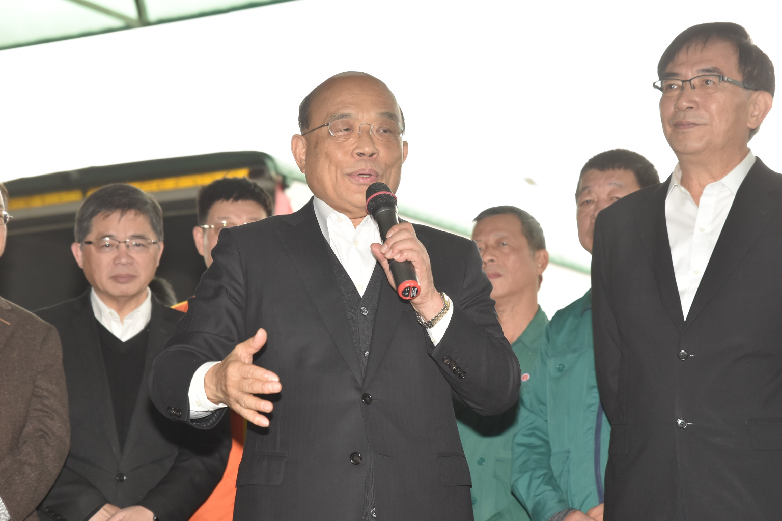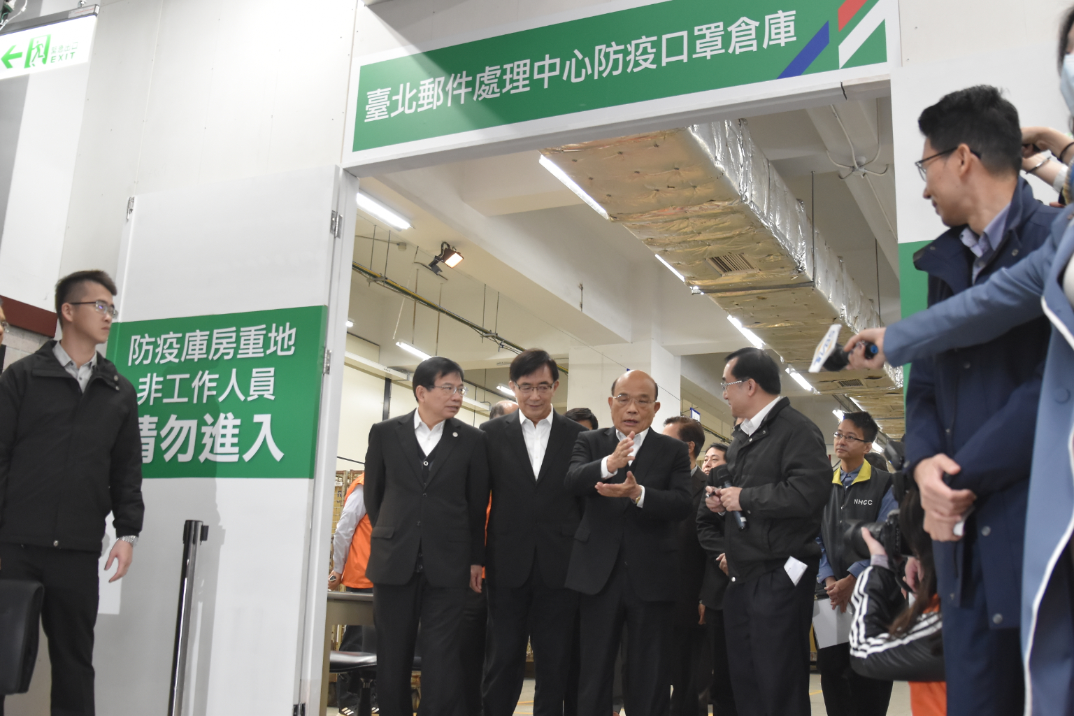 蘇貞昌訪視中華郵政防疫物流中心,今起國內口罩日產量增至420萬片,醫院配送量倍增。蘇貞昌被媒體記者問及武漢包機進度,由於第一台返台包機出了一些狀況,很遺憾,政府持續關心滯留台胞,且以弱勢優先、防疫優先。期許雙方有最好的溝通,解決人民的痛苦,讓人民需求最先得到處理為重。