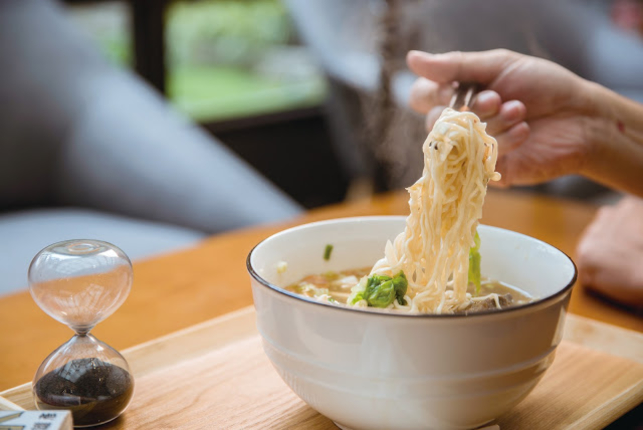 新的篇章從一碗雙牛腱心泡麵說起,半肉半筋搭配蔥花灑上,透明落地窗與適合閱讀的燈光,漫畫搭配泡麵甚是絕響。盤子上的流沙緩緩流下,故作冷靜翻閱起手邊的漫畫,不時偷瞄著碗蓋上的等待說明,上面寫著:「三分鐘,稍縱即逝。但此時此刻這樣的形容詞不合時宜,時間的相對論說明現在盯著沙漏的你,很難熬。」文案讀透飢餓的人心。