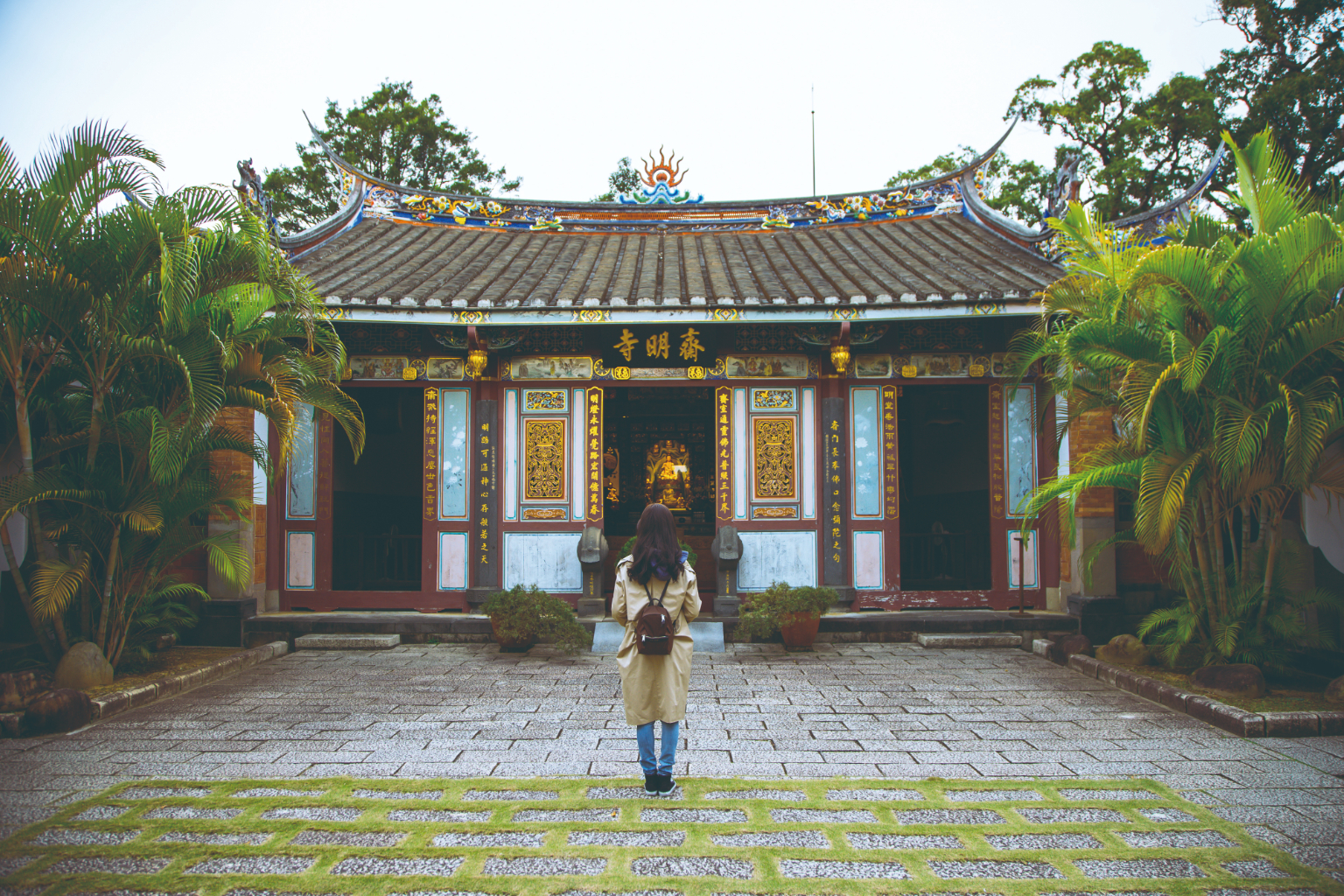 流轉過清代、日治直到近代,多元並蓄的古剎風景,也成為造訪齋明寺值得玩味所在。從閩式山牆燕尾、日式仿唐石燈,到2010 年興建的清水模建築,灰白的弧形長廊與原有的紅磚廟宇,交織出衝突又和諧的風景,也成為拍照打卡的熱門景點。寺廟外側的齋明寺古道,石階沿途草木蔥蔥,彼時為往來大溪的主要路徑,如今用悠閒的步伐拾階而行,體驗古人前往齋明寺參拜的重要道路。