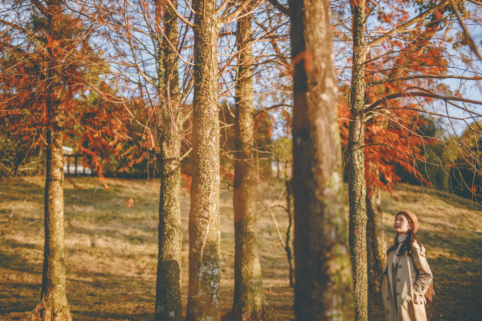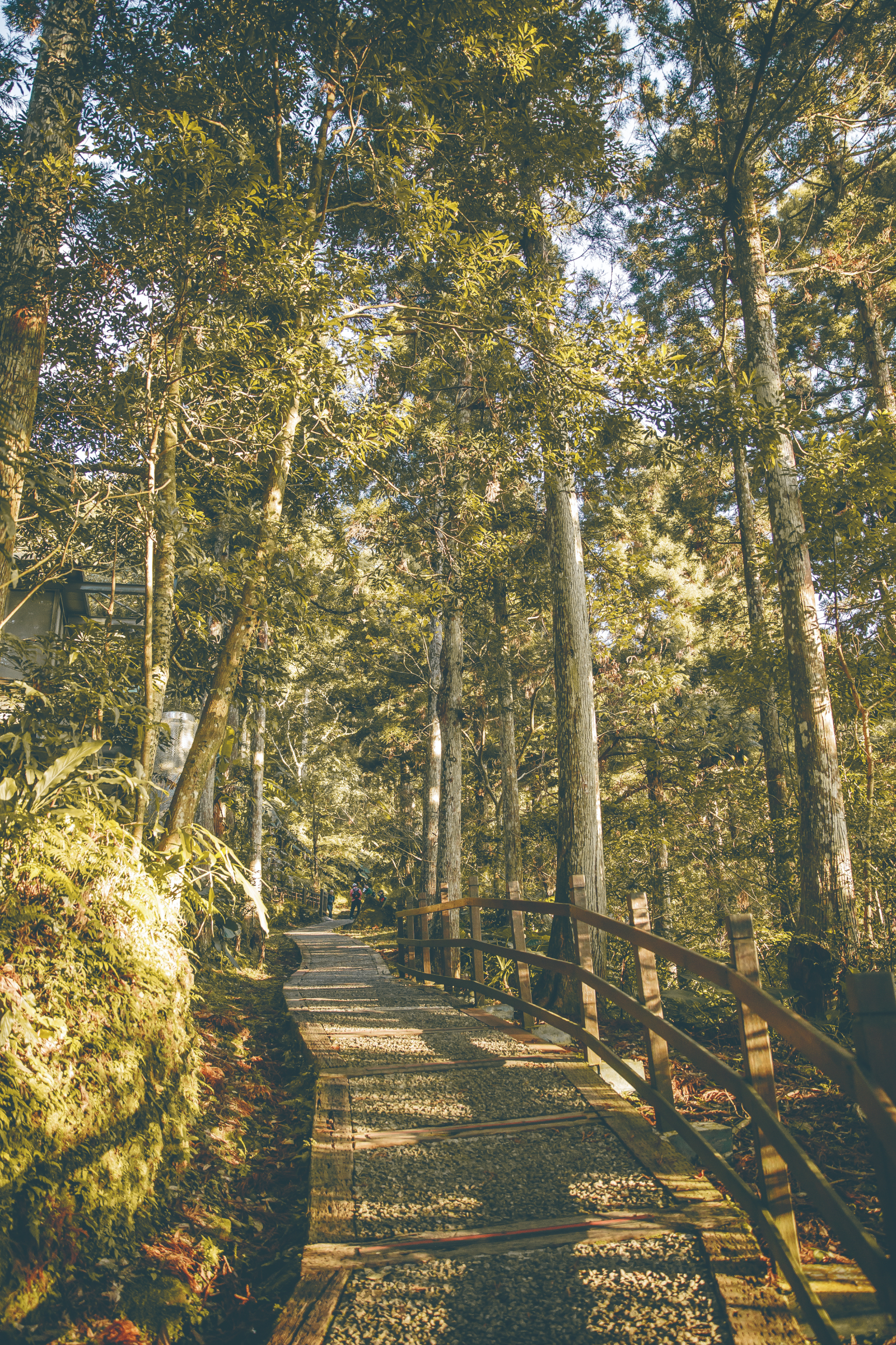 最後一站踏入「東眼山國家森林遊樂區」,明顯感受到空氣變得不一樣,散發出陣陣由樹木堆疊的芳香。園區內有多條被山林簇擁的路徑,像是通往東眼山三角點的自導式步道,也有攻頂親子峰的步道路線,可以考量自身體能選擇合適的路線。隨意漫步於園區的步道中,兩側是夾道歡迎的闊葉林,抬頭一望則是高聳列隊的柳杉與杉木,而陽光穿越樹葉的間隙,碎影落到地面,形成如夢似幻的情境。