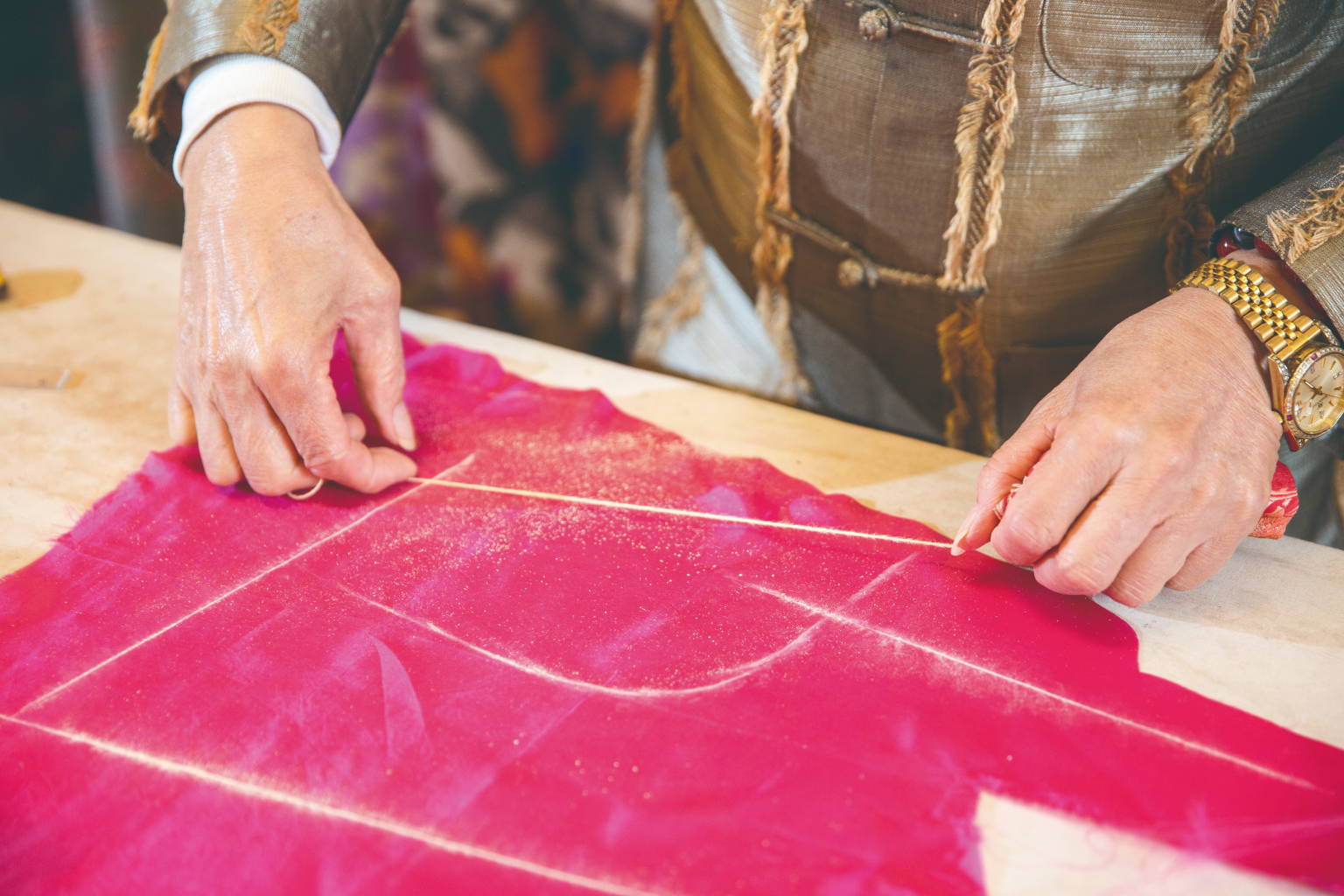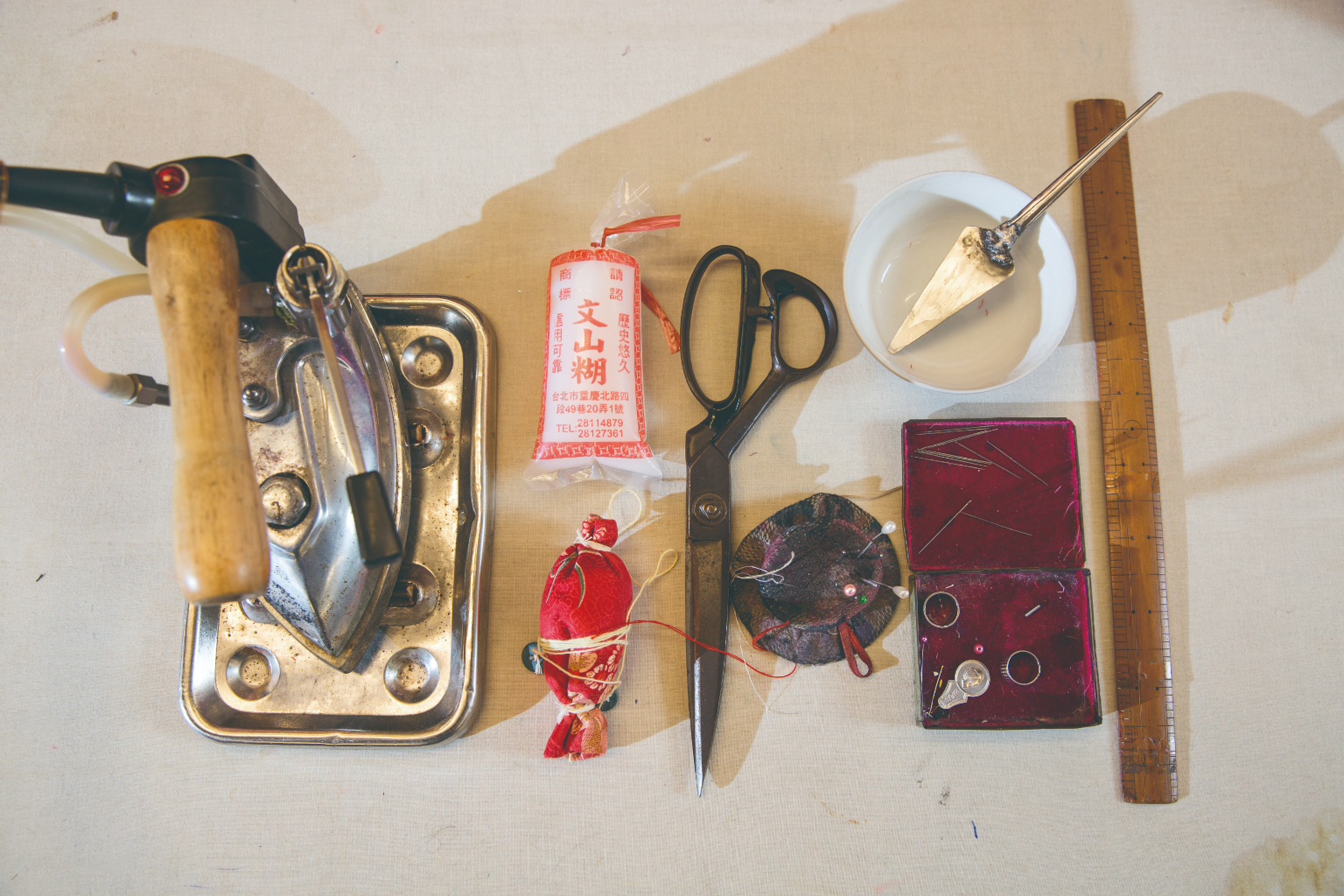 談起手工旗袍的縫製,張文樹仔細說明可分為上海派與福州派,自己學習的上海手藝,就是以「精細」著稱。當年在台北當學徒時,張文樹的師傅專門在幫官夫人量身打造旗袍,就是因上海師傅的手藝有口皆碑。