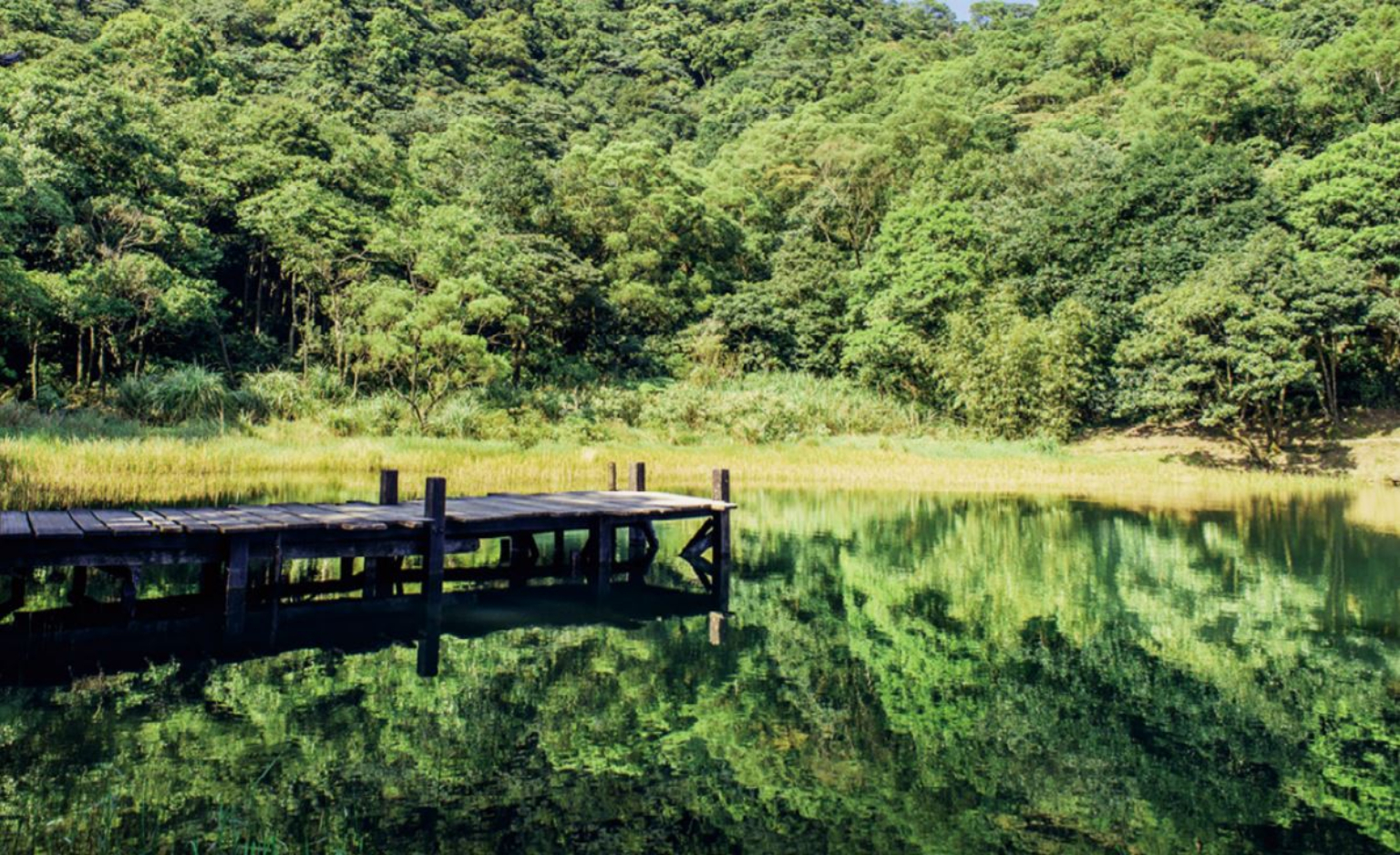 隱藏在汐止五指山深處的新山夢湖,冬季午後四周常有山嵐飄起,使得湖泊周圍有如幻似夢般的意境,因此得其美名。大片樹林環繞湖面,湖水在陽光的倒映下呈現碧綠色澤,水質清澈,更可見湖中魚群嬉戲和水草隨波逐流,駐足岸邊,彷彿望著翡翠玉石般晶瑩閃爍,令人不自覺屏息於如此澄澈的風光。