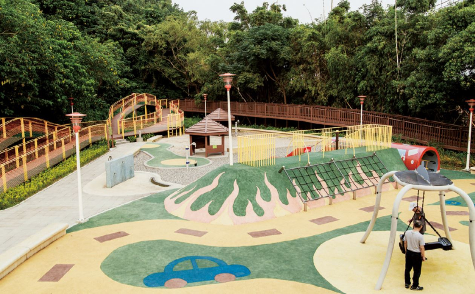 登上古鐘樓的路徑是一座直立式攀爬繩,孩童們手腳並用地奮力向上爬,十分刺激,年紀較小的幼童也不必灰心,鐘樓底下大有玄機,藏有適合小小孩玩耍的「幼兒遊戲區」,豐富的面板遊具及敲打即會發出聲響的彩色鼓讓孩子們可以玩的流連忘返。