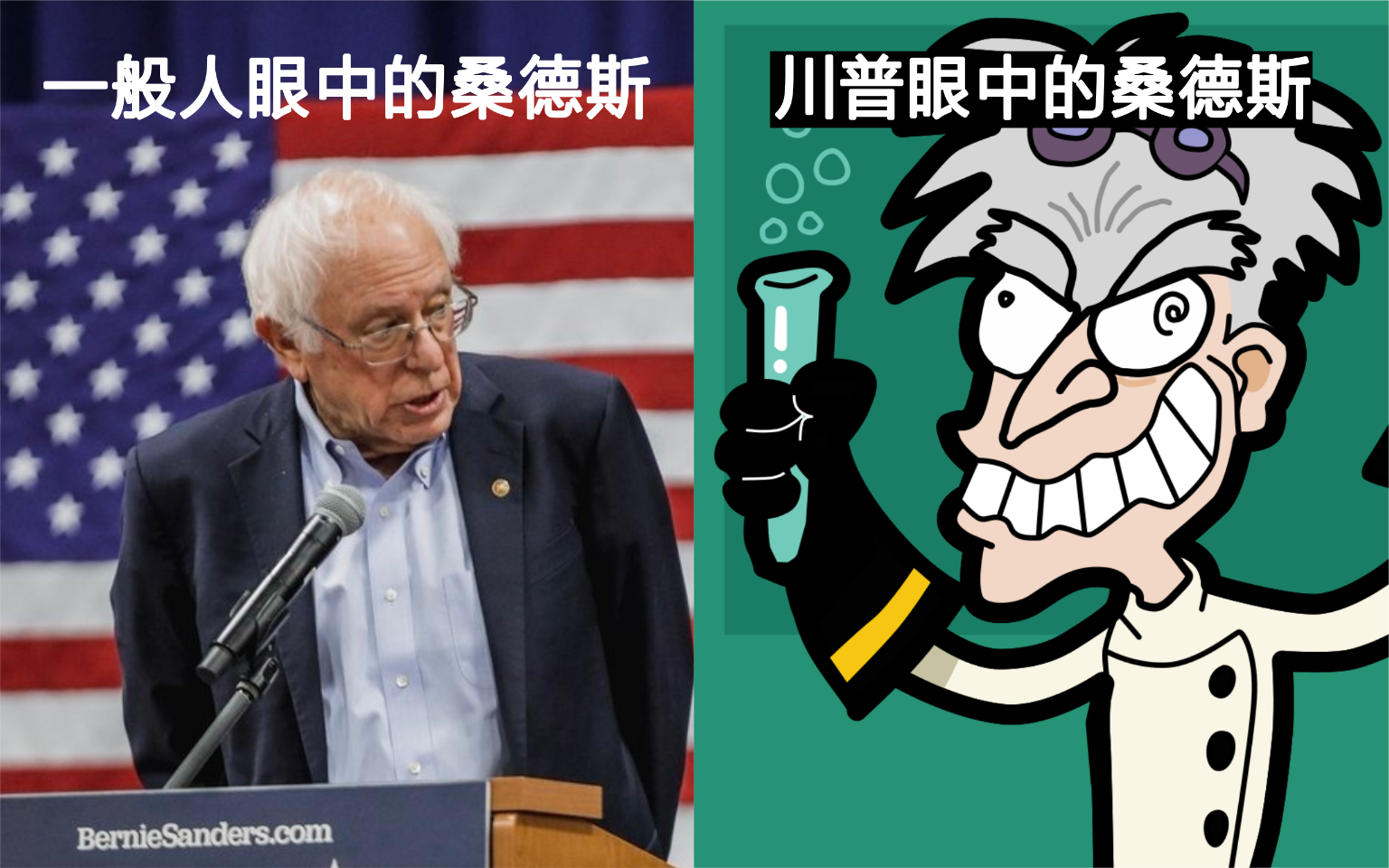 川普戲稱他是「怪胎教授(nutty professor)」、「瘋狂伯尼(Crazy Bernie)」,自稱是「社會主義者」的他頗受拉丁裔和非裔選民歡迎,這也是川普一直難以打動的族群。