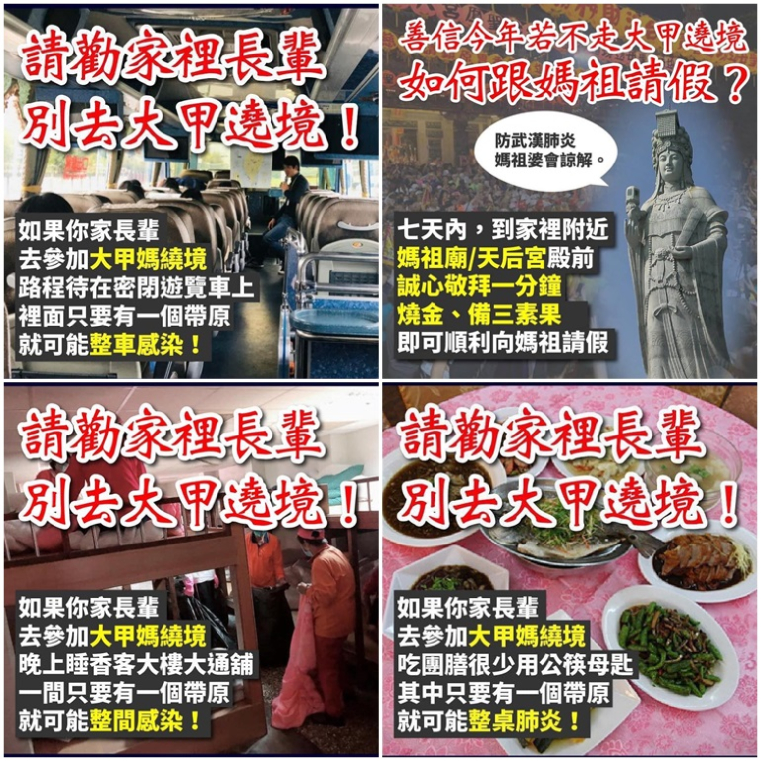 有民眾在臉書發起「跟媽祖請假」的活動,至26日已吸引4千人參加,1.7萬名網友關注。也有網友溫情喊話「媽祖娘娘能體諒我們的~」、「顏董不要讓媽祖背黑鍋」,也有網友製作LINE長輩圖表示很多參加的長輩不用臉書必須傳LINE。