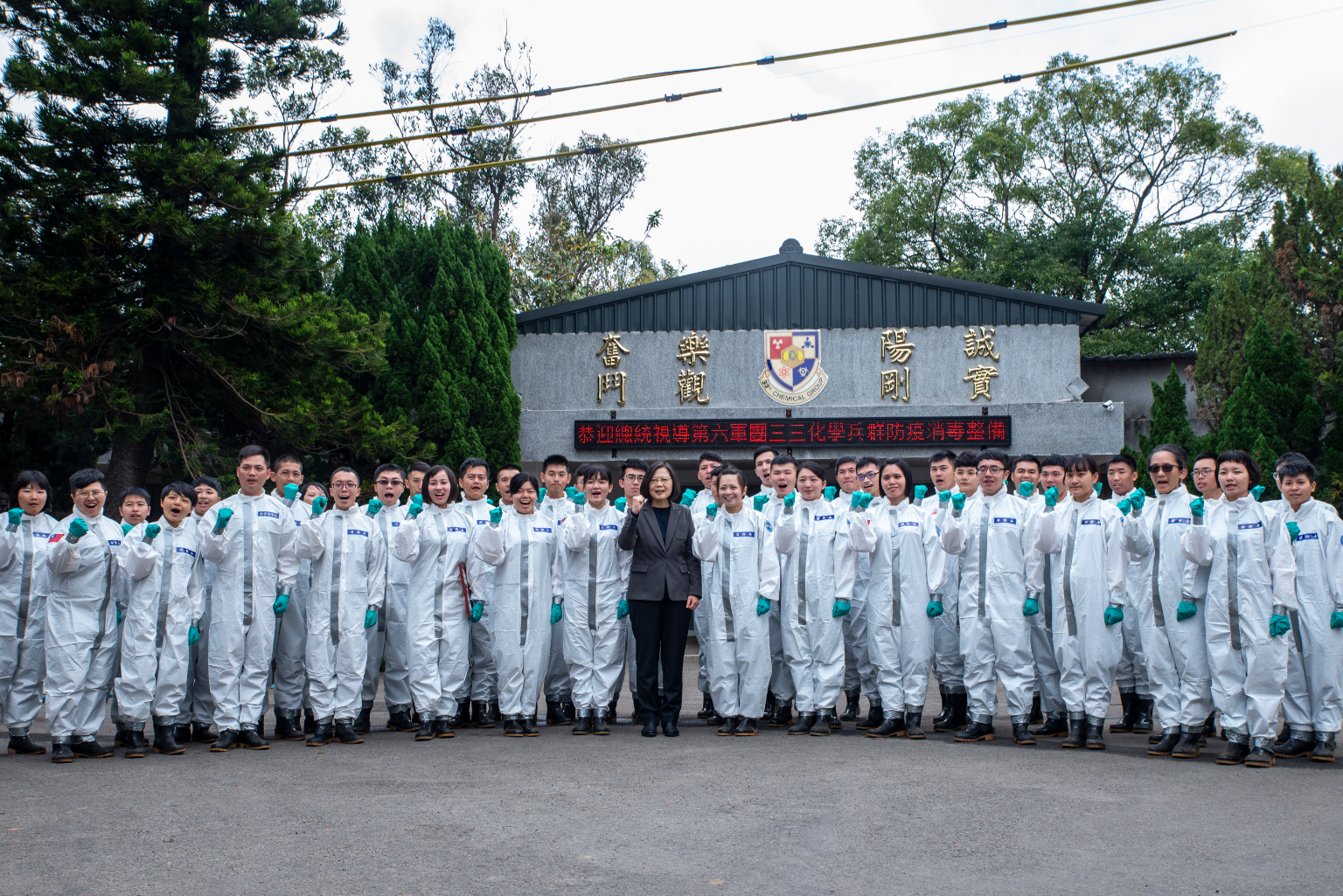 而蔡英文總統今(27)日前往位於桃園市龍崗區的陸軍第六團「33化學兵群」指揮部,視導這次負責執行武漢返國包機、鑽石公主號郵輪返國民眾及檢疫消毒作業的相關防疫整備。