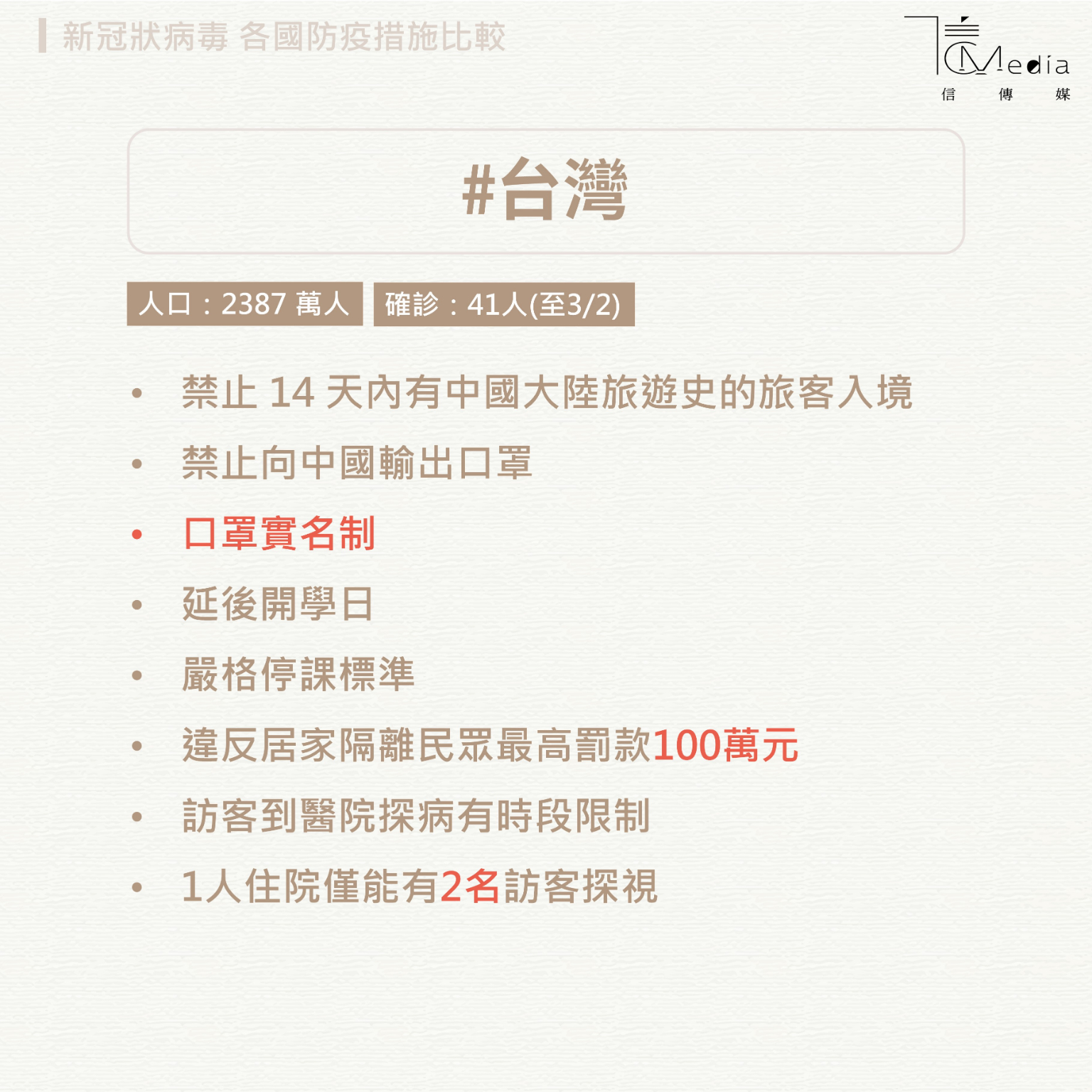 更多內容台41例確診、爆院內感染》民眾該如何防堵?台大公衛專家:人跟人保持1公尺武漢肺炎確診外籍看護到過「這些地方」!零星社區感染...基層診所如何防疫?