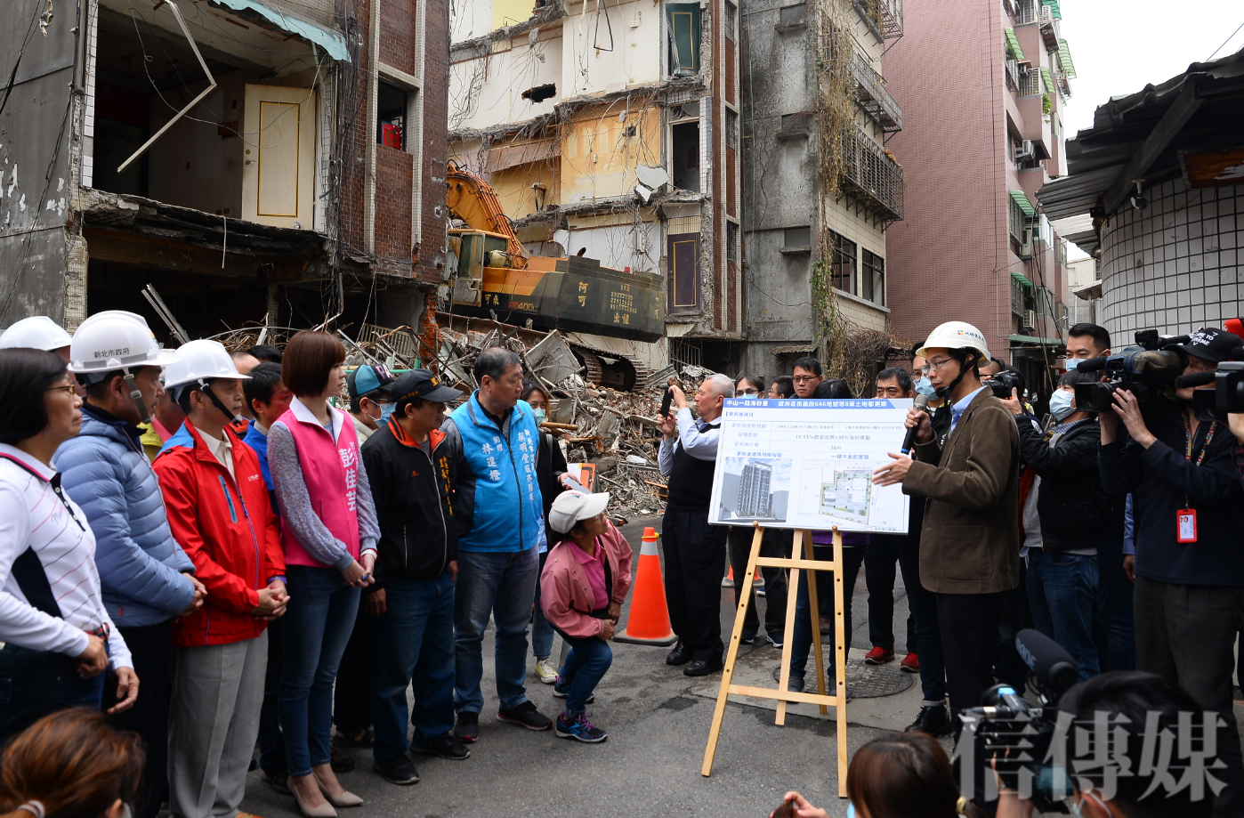 新北市長侯友宜來到蘆洲地區中山一路現場,關心海砂屋拆除情形。(攝影/趙世勳)