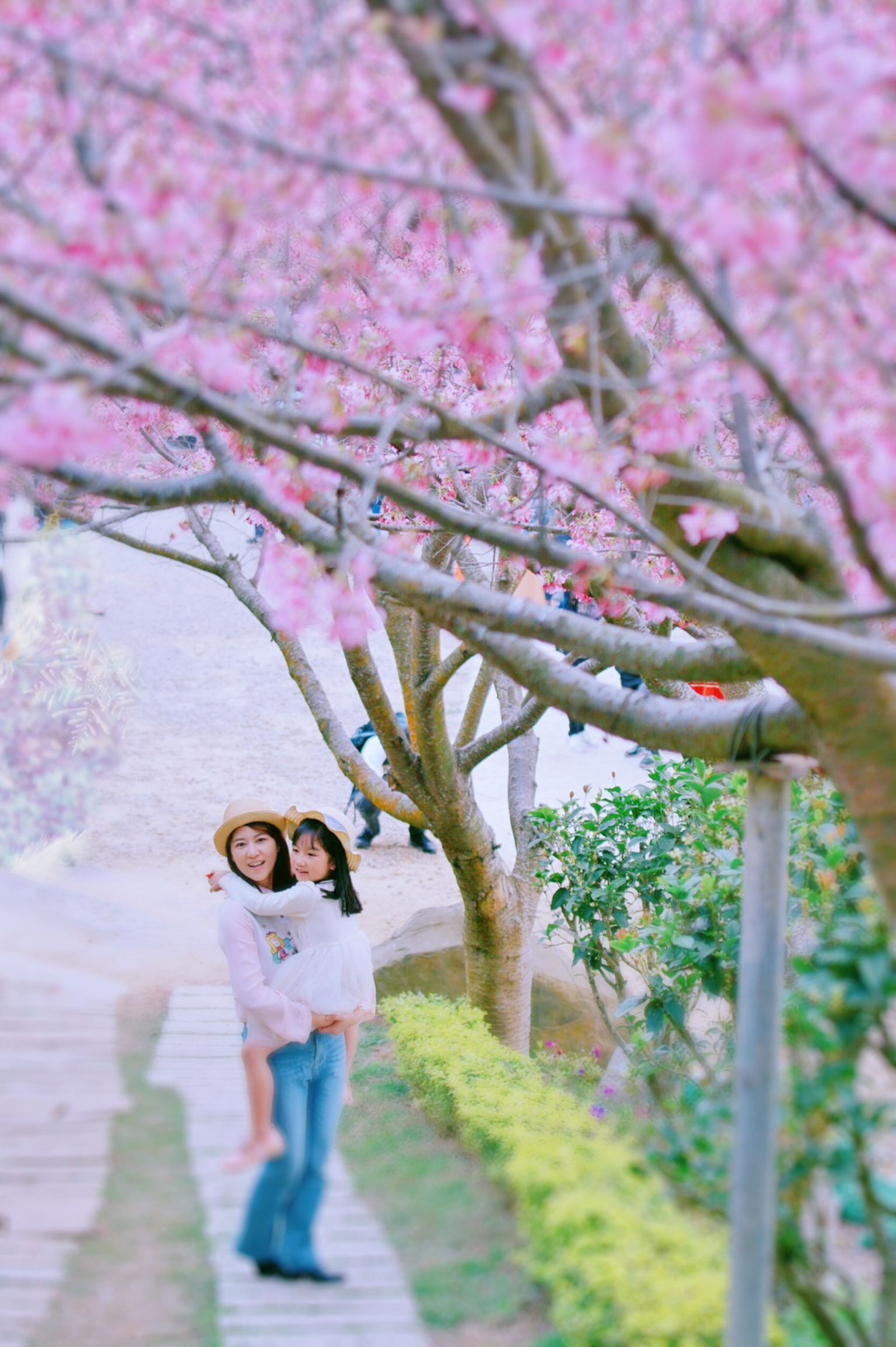 把櫻花當做前景來用,光圈稍微放大,讓前景看著不那麼實,增加畫面層次感。
