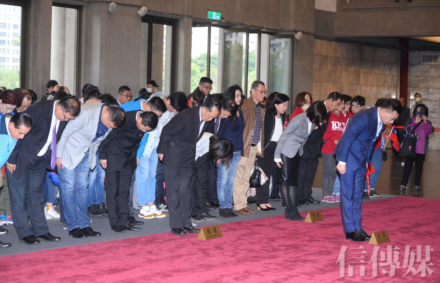 國民黨新任主席江啟臣上任後,12日上午首度率領黨務主管、中常委前往國父紀念館向該黨總理孫中山獻花致敬。
