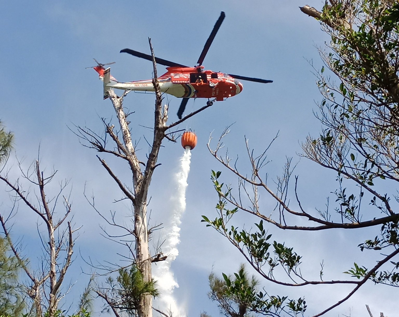 圖說=5空勤支援灌灑水柱,把握第一時間撲滅火勢。