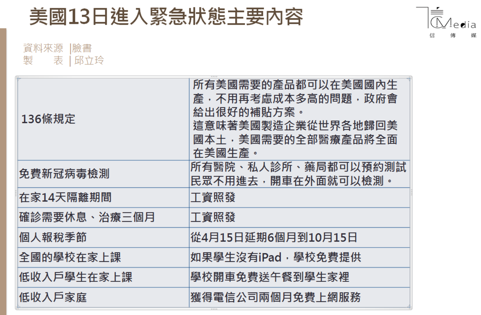 川普也180度扭轉先前對武漢肺炎輕忽態度,他周一在白宮記者會上警告,疫情可能持續到8月,並將導致美國經濟掉入衰退。